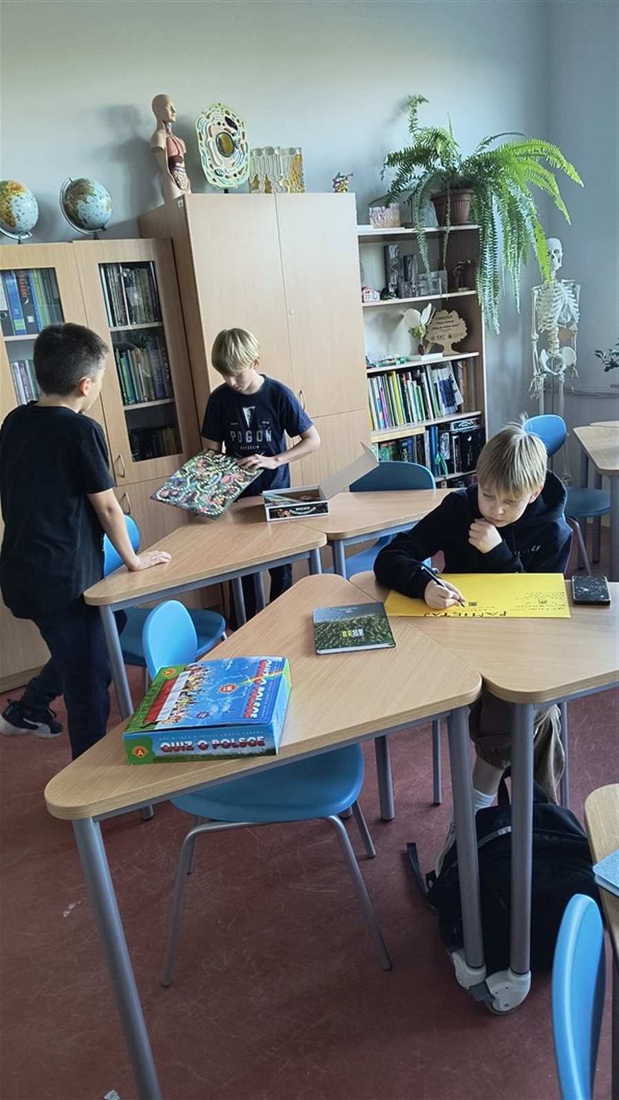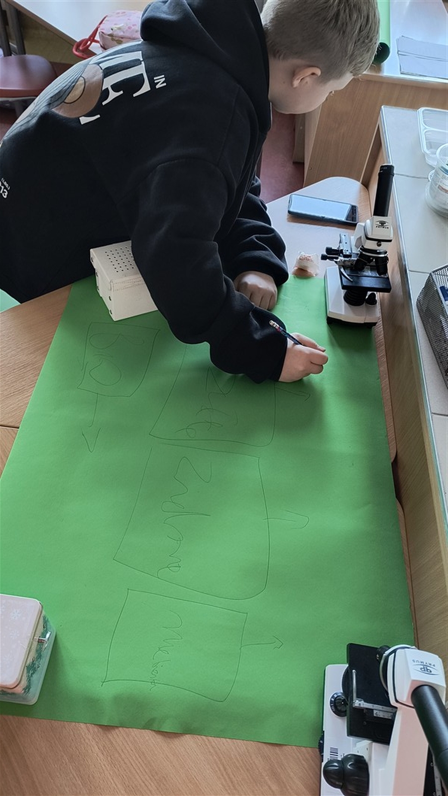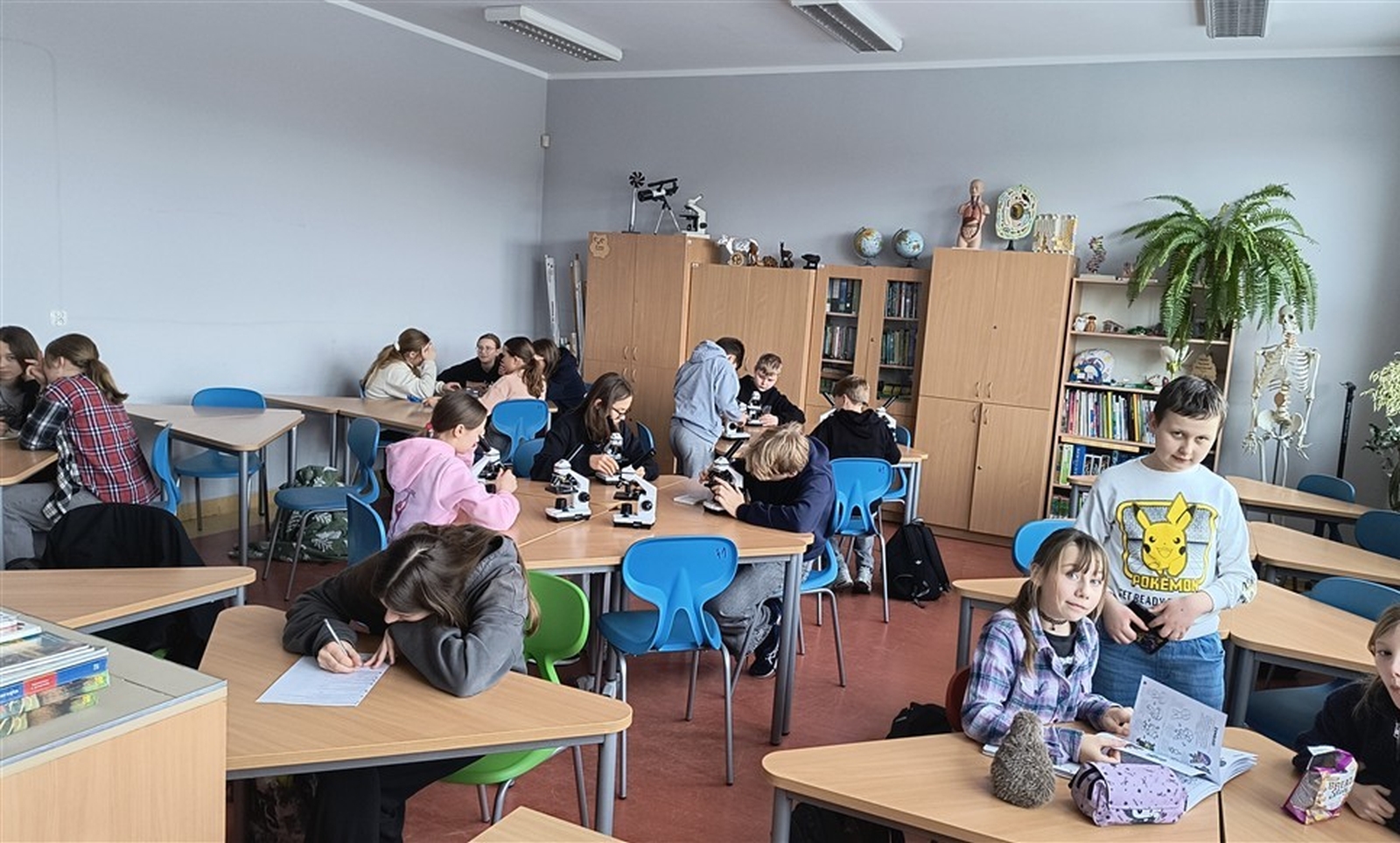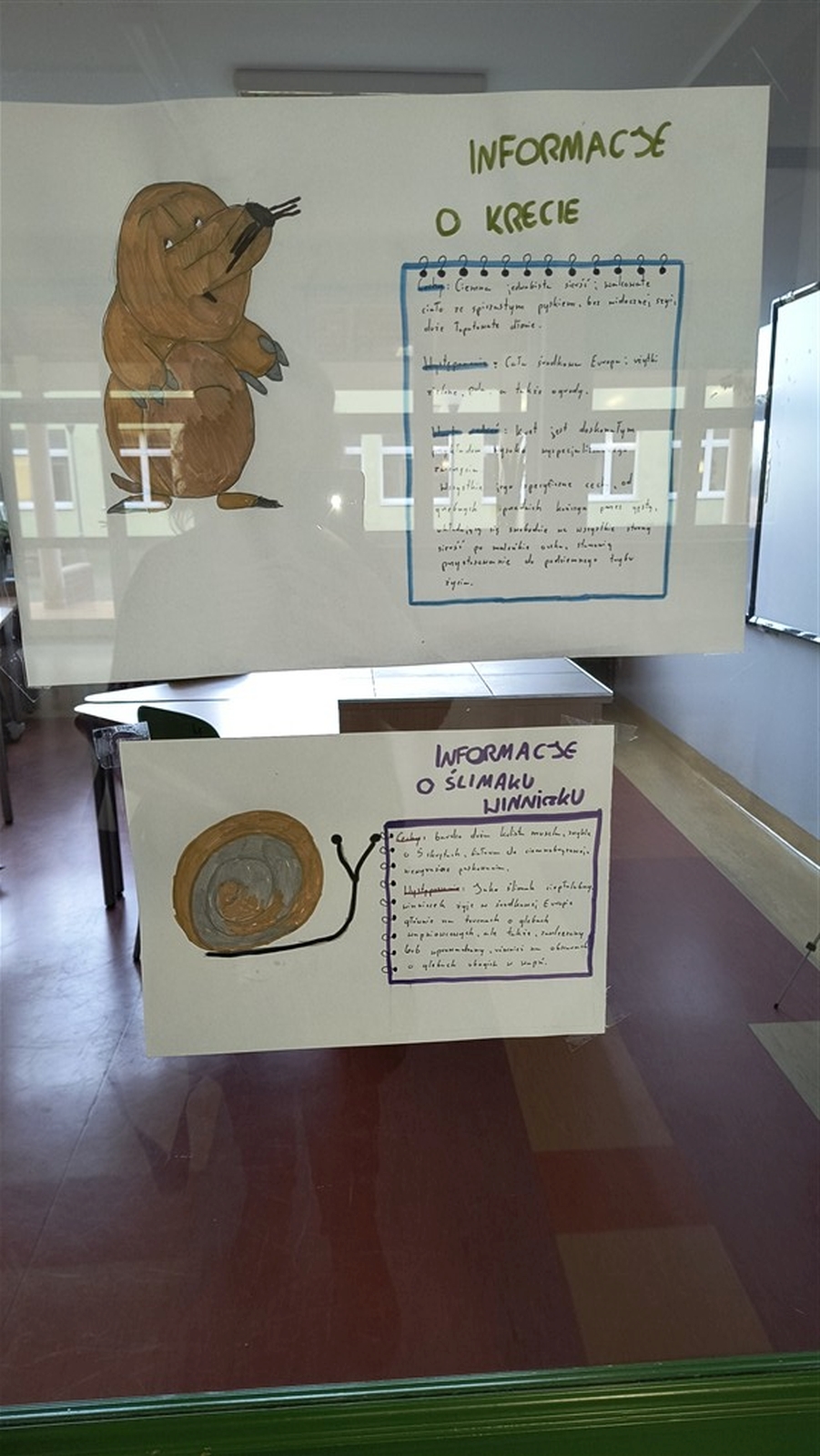 W trakcie półrocza uczniowie obejrzeli film „Golce”, bawili się w „Przypasowanki”, utrwalając wiedzę przyrodniczą, a podczas spotkania online w ramach „Przyrodniczych spotkań z nauką” poznawali fascynujący świat bakterii człowieka (zajęcia prowadzone przez członków Oddziału Szczecińskiego Polskiego Towarzystwa Przyrodników im. Kopernika oraz Sekcji Nauk o Człowieku PTP). Powstały również plakaty przyrodnicze – „Ciekawostki o zwierzętach”, które zostały wyeksponowane na drzwiach pracowni.