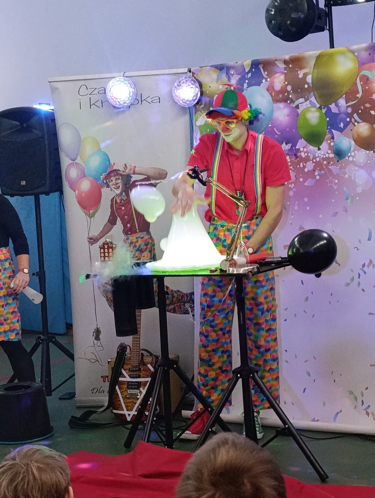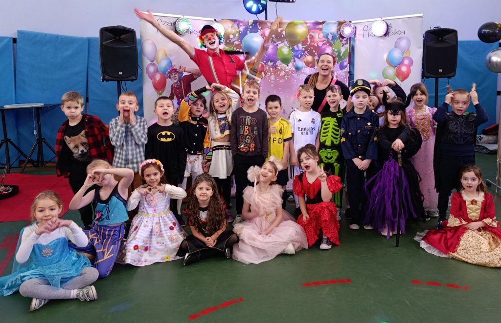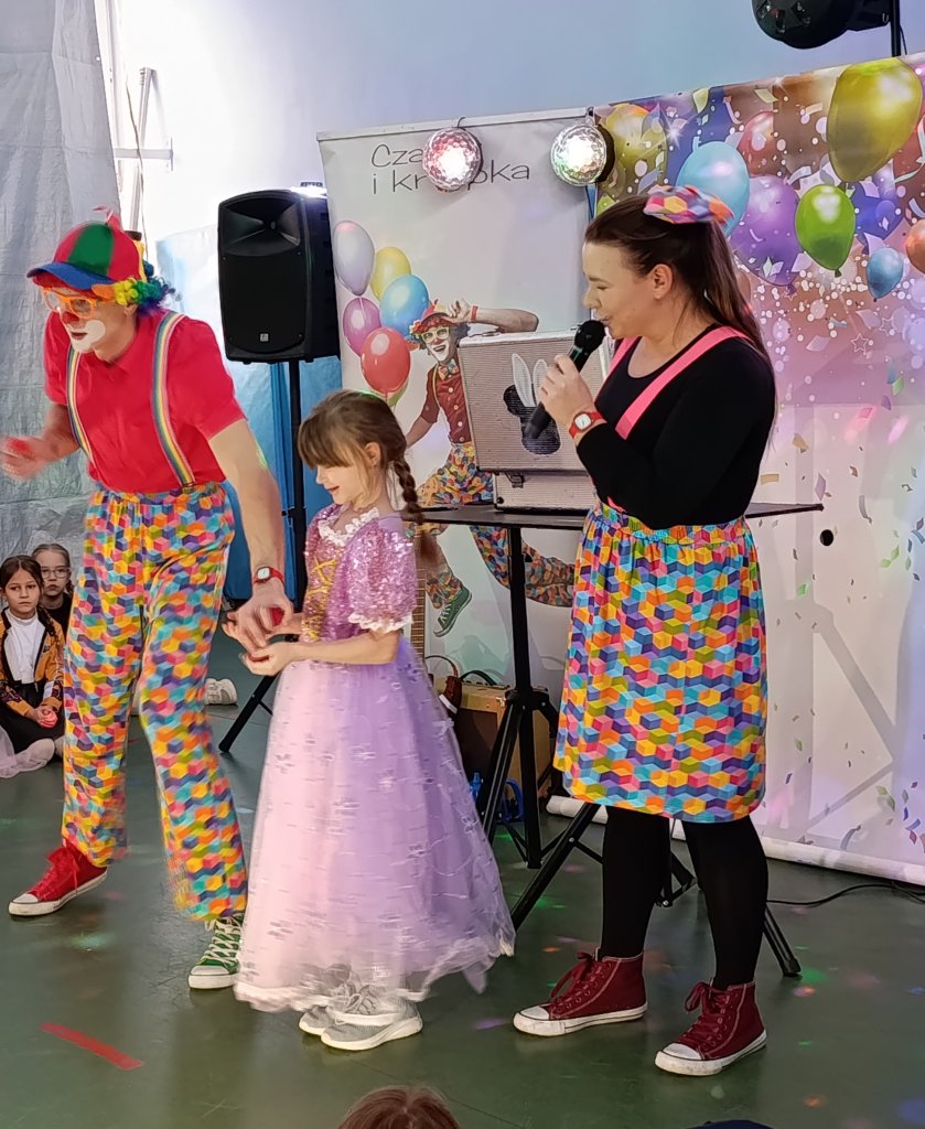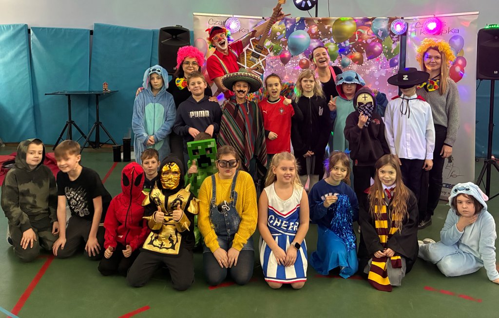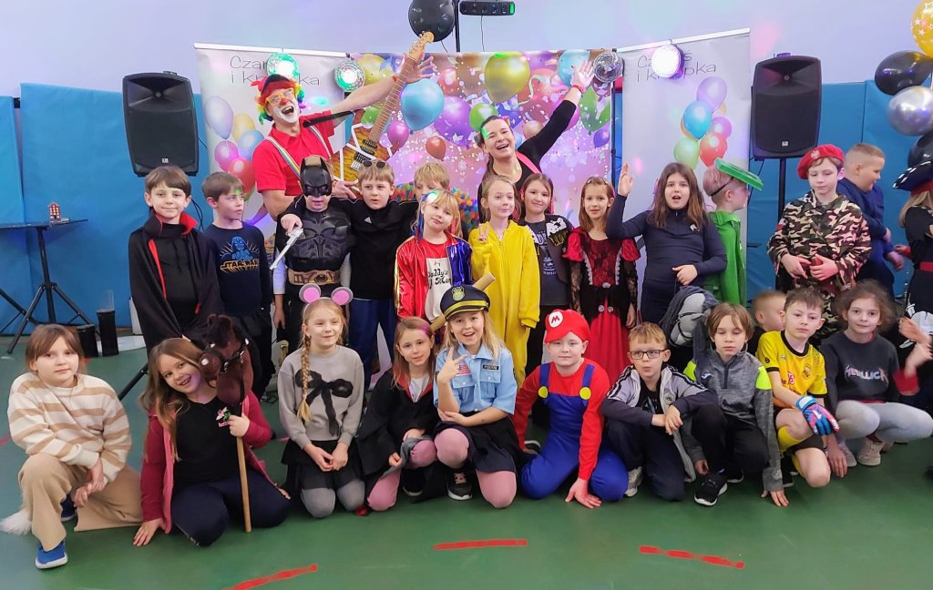 12 stycznia odbył się bal karnawałowy dla uczniów klas 1–3. Wspaniałą zabawę poprowadzili animatorzy Czaruś i Kropka, którzy zadbali o moc atrakcji i niezapomnianą atmosferę. Dzieci z zachwytem oglądały pokaz iluzji, chętnie brały udział w zabawach tanecznych oraz różnorodnych zabawach ruchowych. Dużo radości sprawiły również zabawy z bańkami oraz pokaz baniek mydlanych, który wywołał mnóstwo uśmiechów.