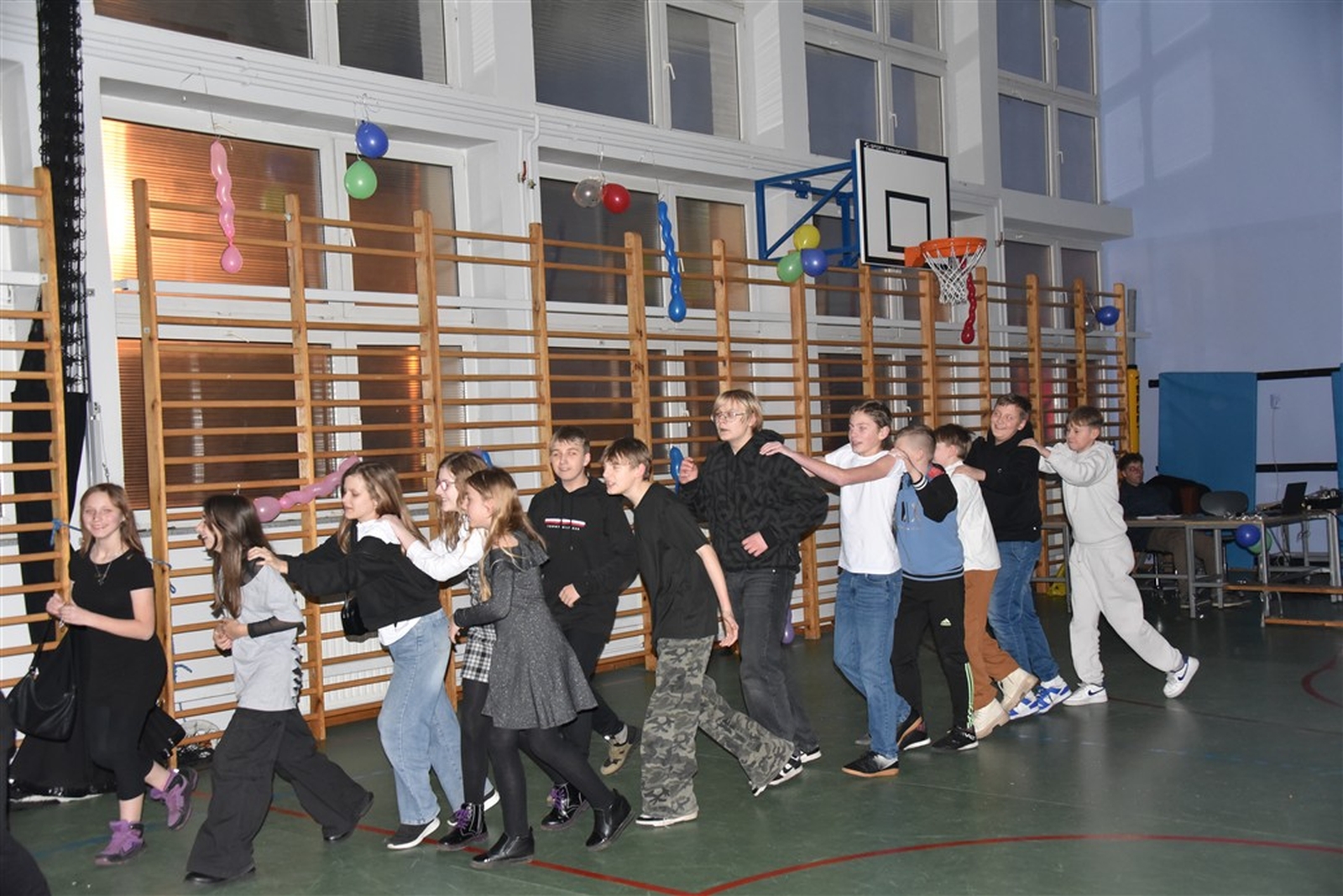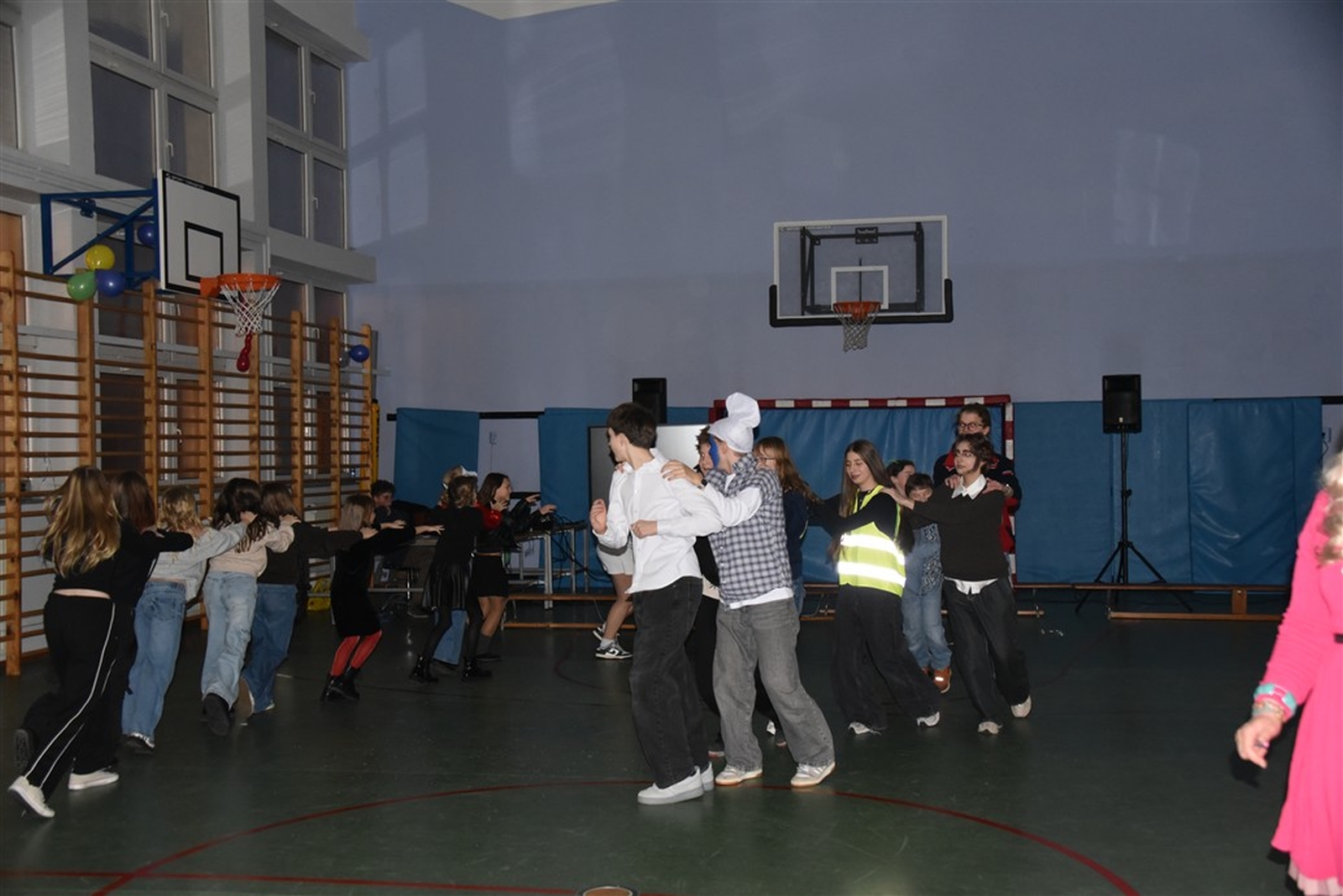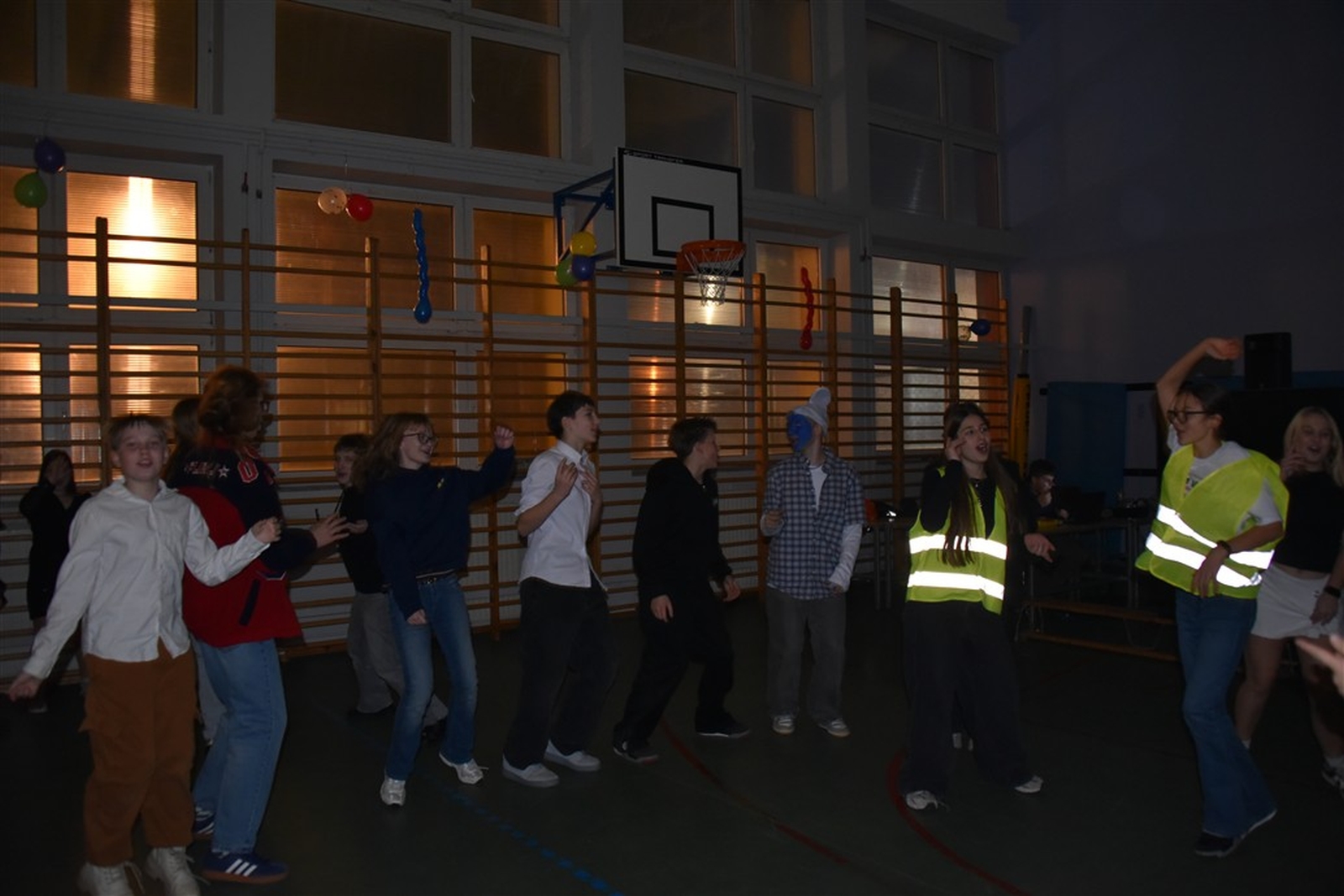 W czwartek, 22.01.2026 roku, w naszej szkole odbyła się pełna energii dyskoteka karnawałowa, podczas której uczniowie zaprezentowali niezwykłą kreatywność. Uczestnicy przyszli przebrani za ciekawe postacie (nie tylko z bajek) lub przedstawicieli ciekawych zawodów, co nadało wydarzeniu wyjątkowy, kolorowy charakter. Na uczestników czekały zabawy integracyjne, które szybko rozruszały całą salę i sprawiły, że każdy mógł poczuć się częścią wspólnej zabawy. Dużym zainteresowaniem cieszyły się także piosenki na zamówienie, dzięki którym każdy mógł usłyszeć swoje ulubione utwory.