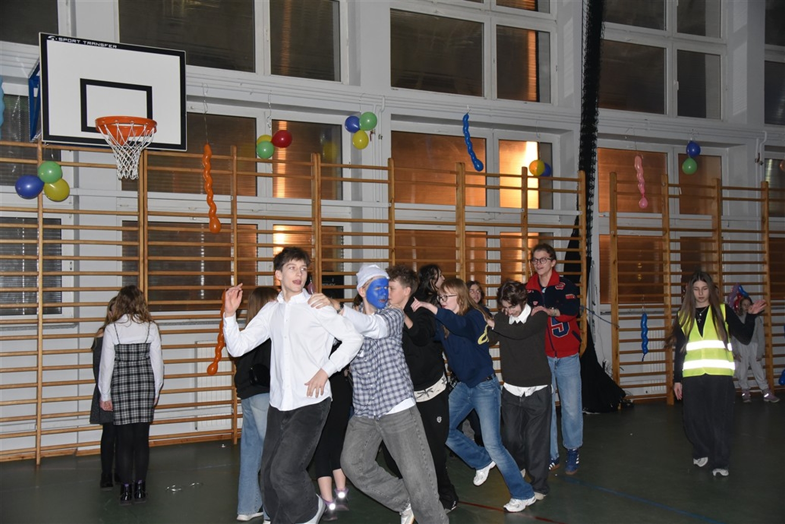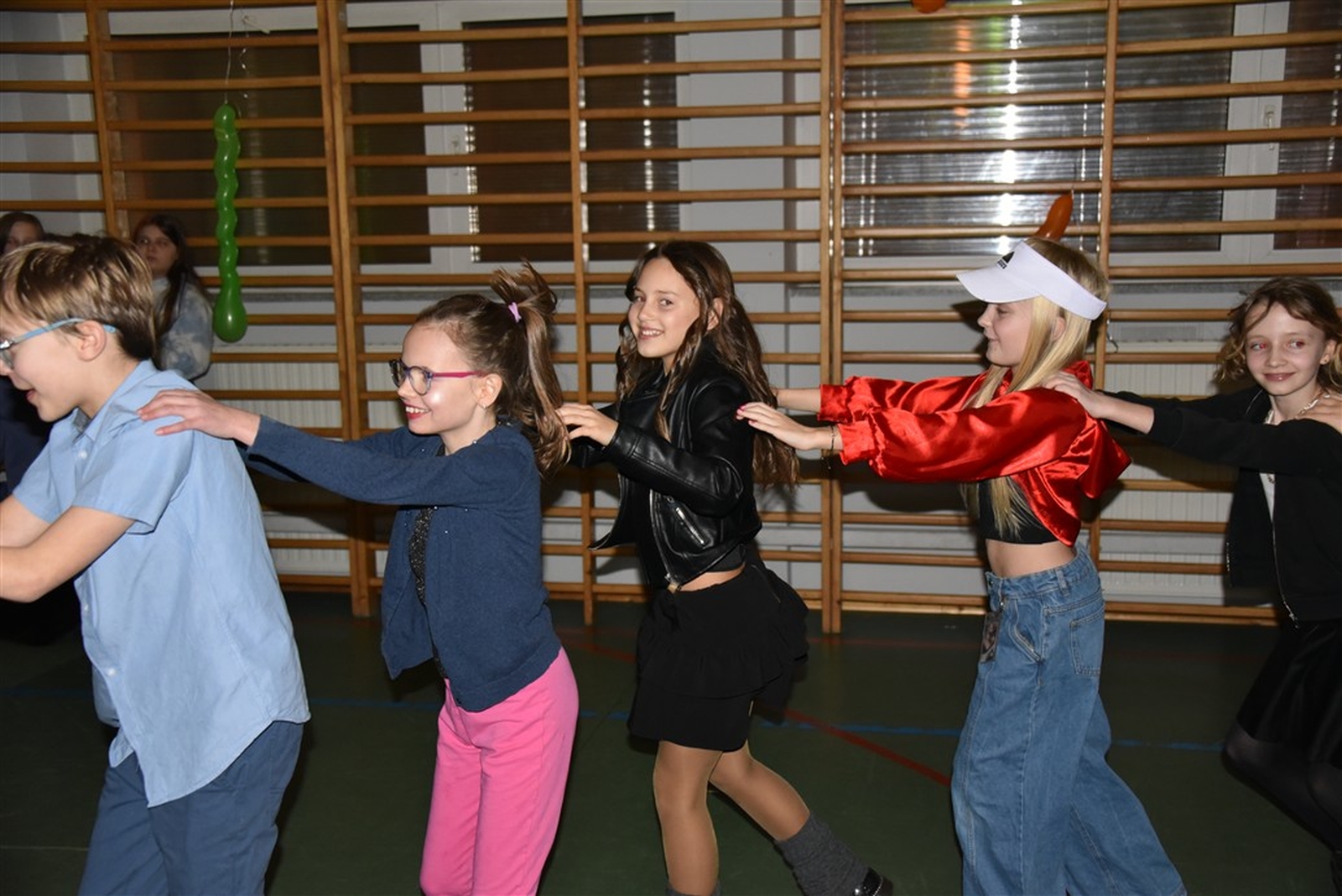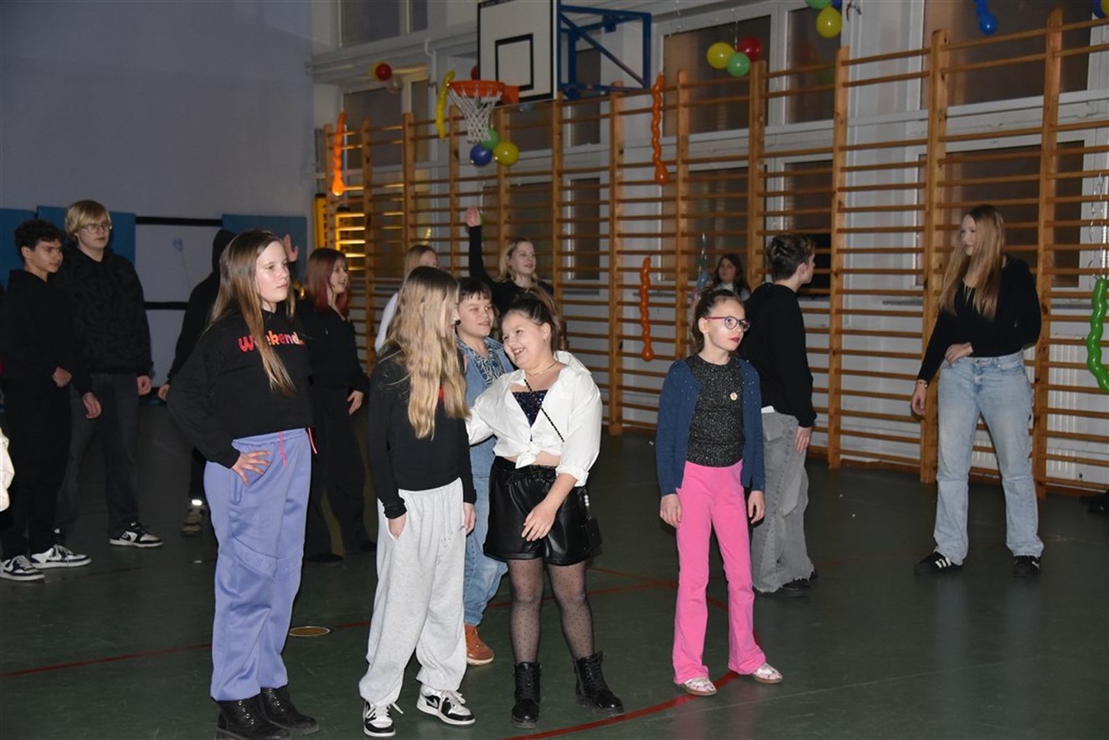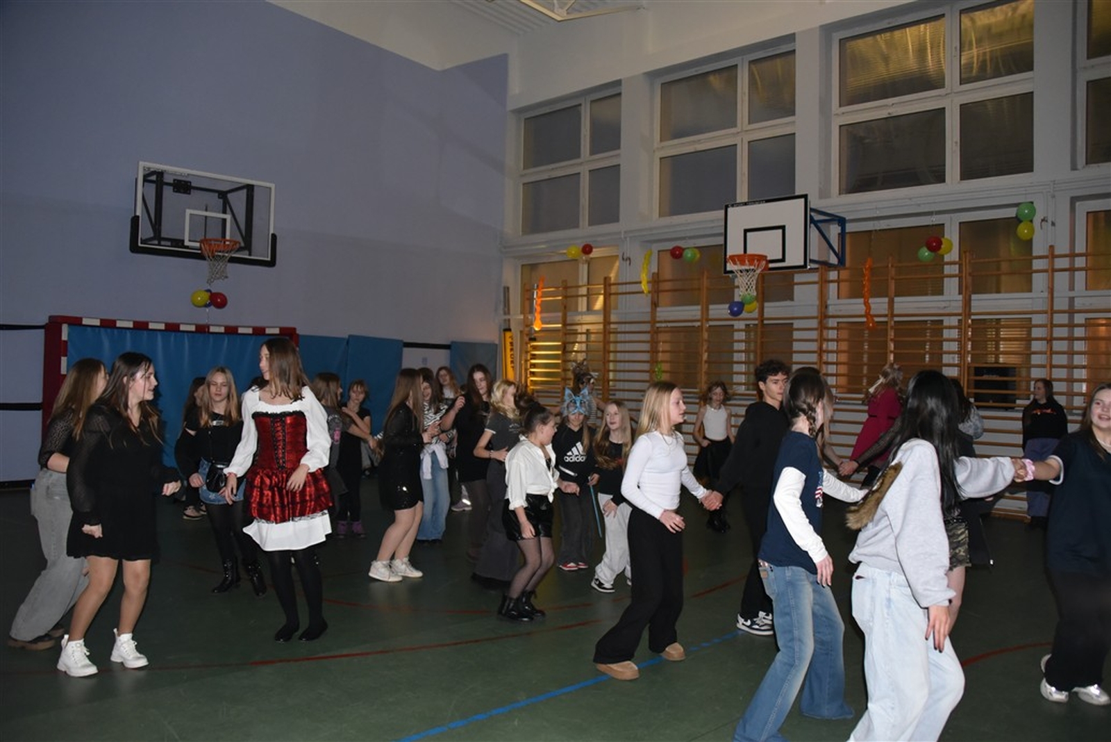 W czwartek, 22.01.2026 roku, w naszej szkole odbyła się pełna energii dyskoteka karnawałowa, podczas której uczniowie zaprezentowali niezwykłą kreatywność. Uczestnicy przyszli przebrani za ciekawe postacie (nie tylko z bajek) lub przedstawicieli ciekawych zawodów, co nadało wydarzeniu wyjątkowy, kolorowy charakter. Na uczestników czekały zabawy integracyjne, które szybko rozruszały całą salę i sprawiły, że każdy mógł poczuć się częścią wspólnej zabawy. Dużym zainteresowaniem cieszyły się także piosenki na zamówienie, dzięki którym każdy mógł usłyszeć swoje ulubione utwory.