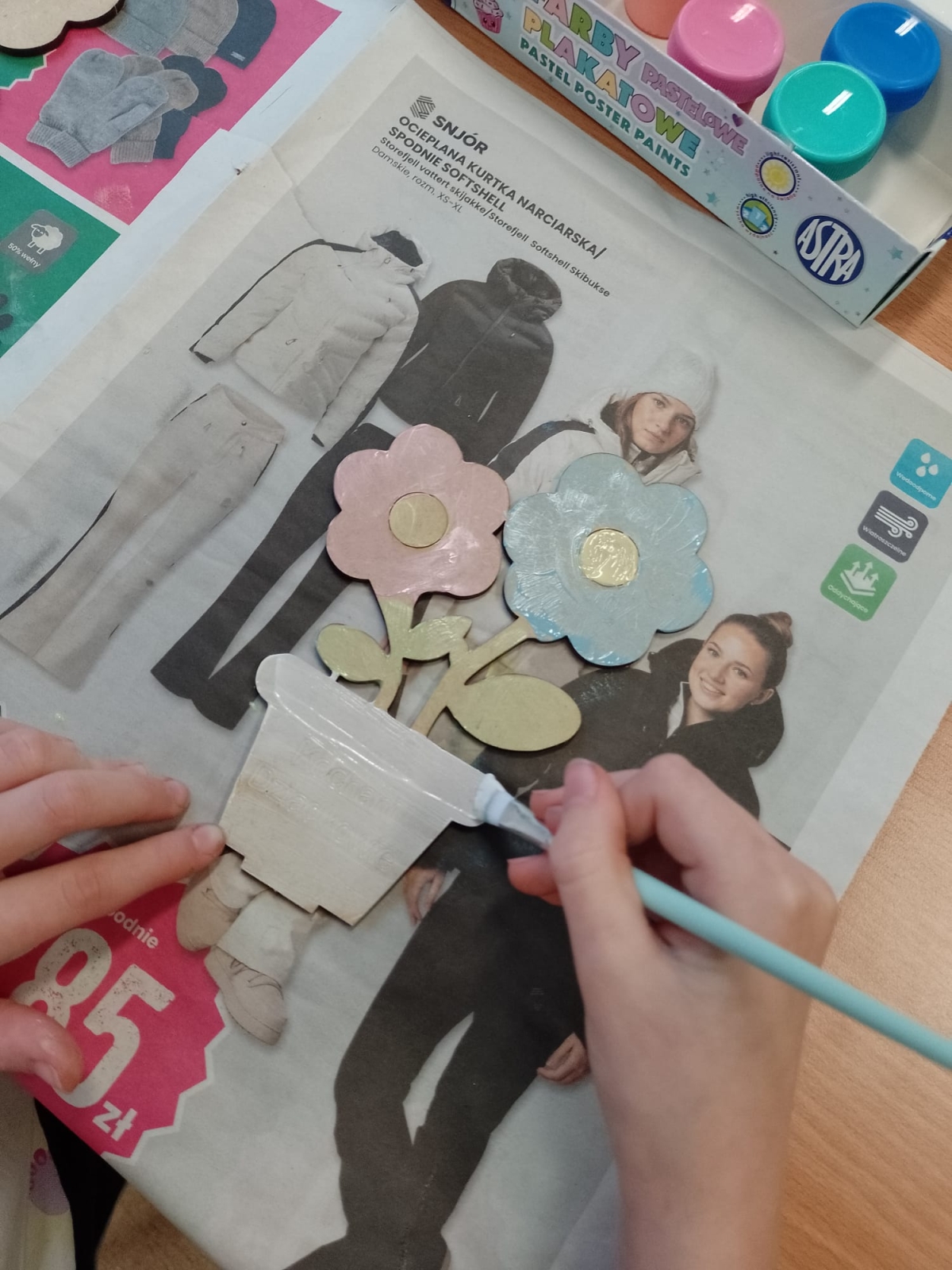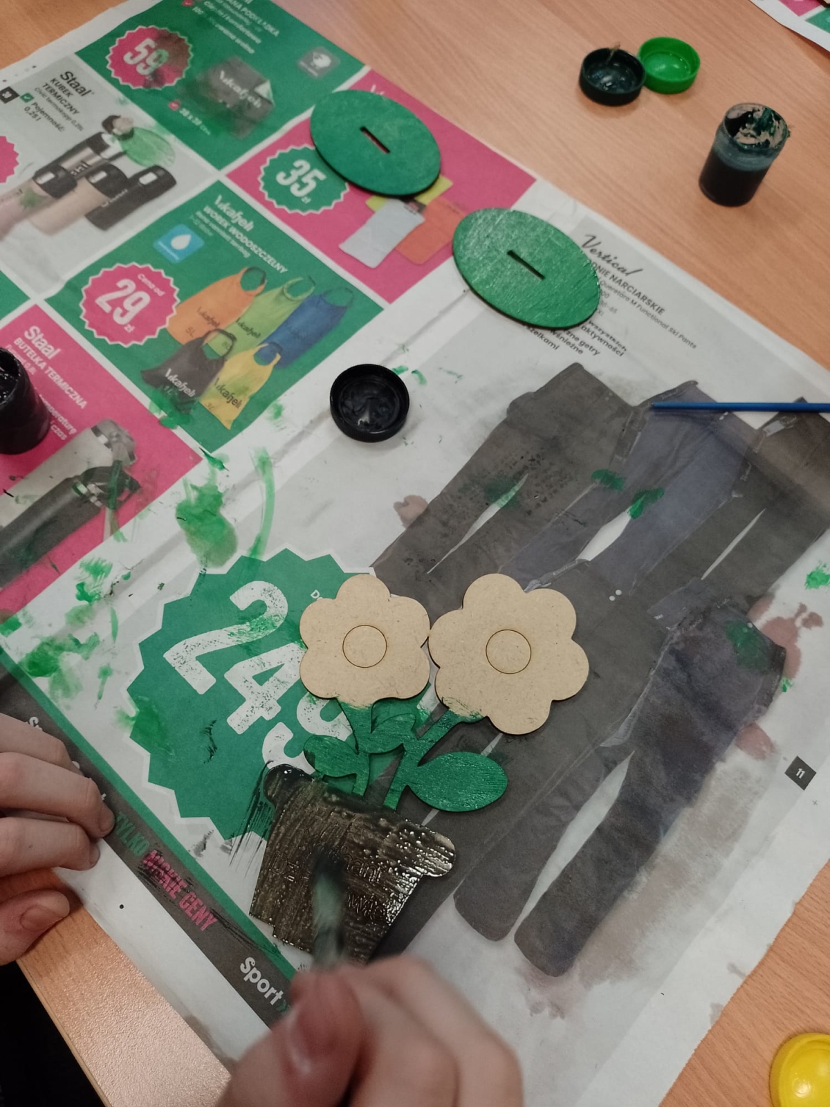 Na Kółku Florystycznym podczas warsztatów z okazji zbliżającego się Dnia Babci i Dziadka uczestnicy z dużym zaangażowaniem i radością wykonywali piękne upominki.
