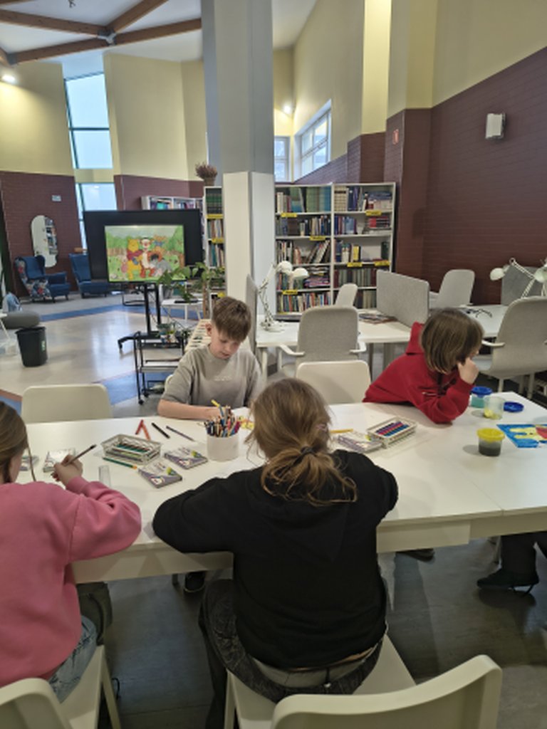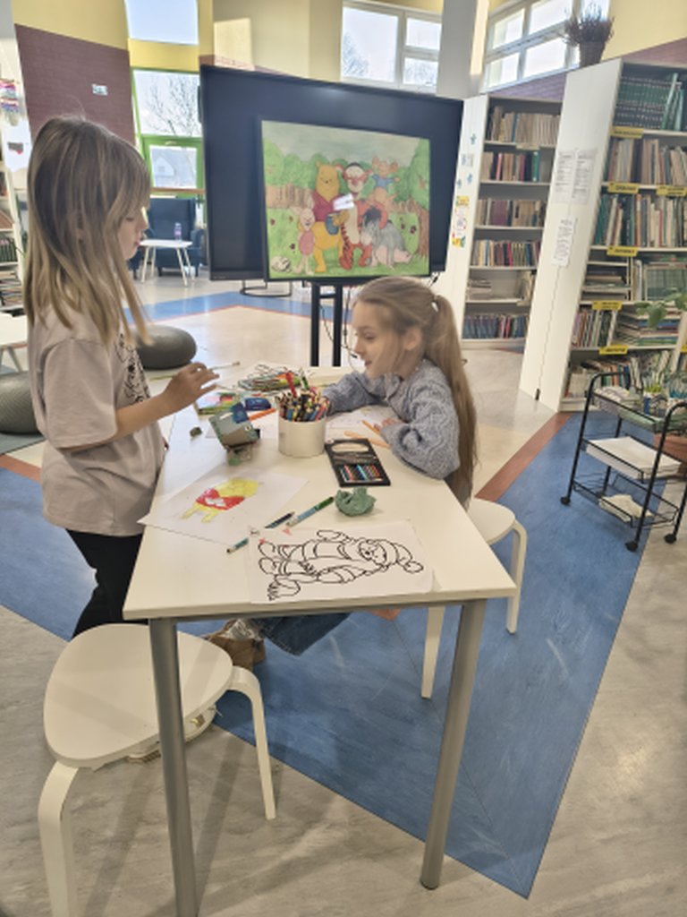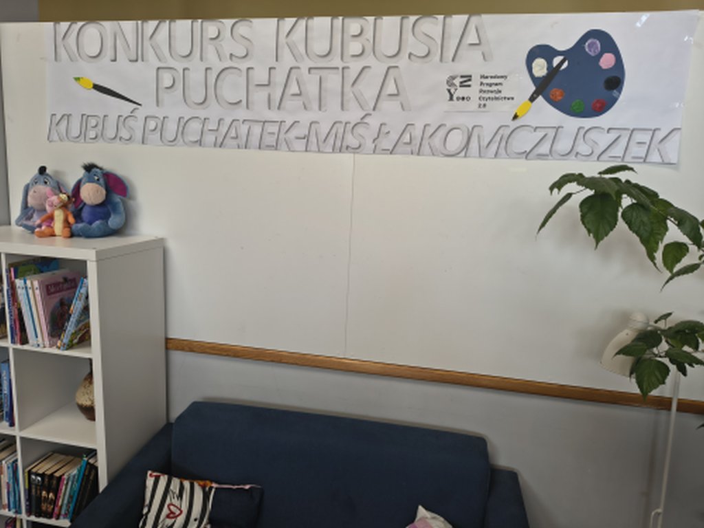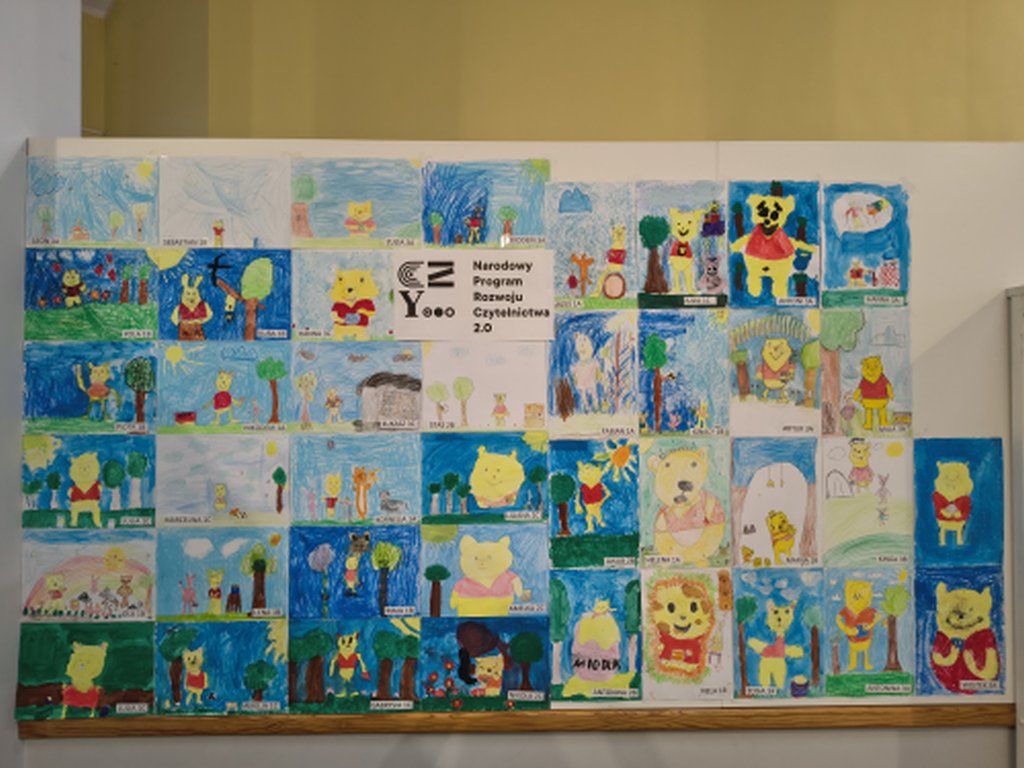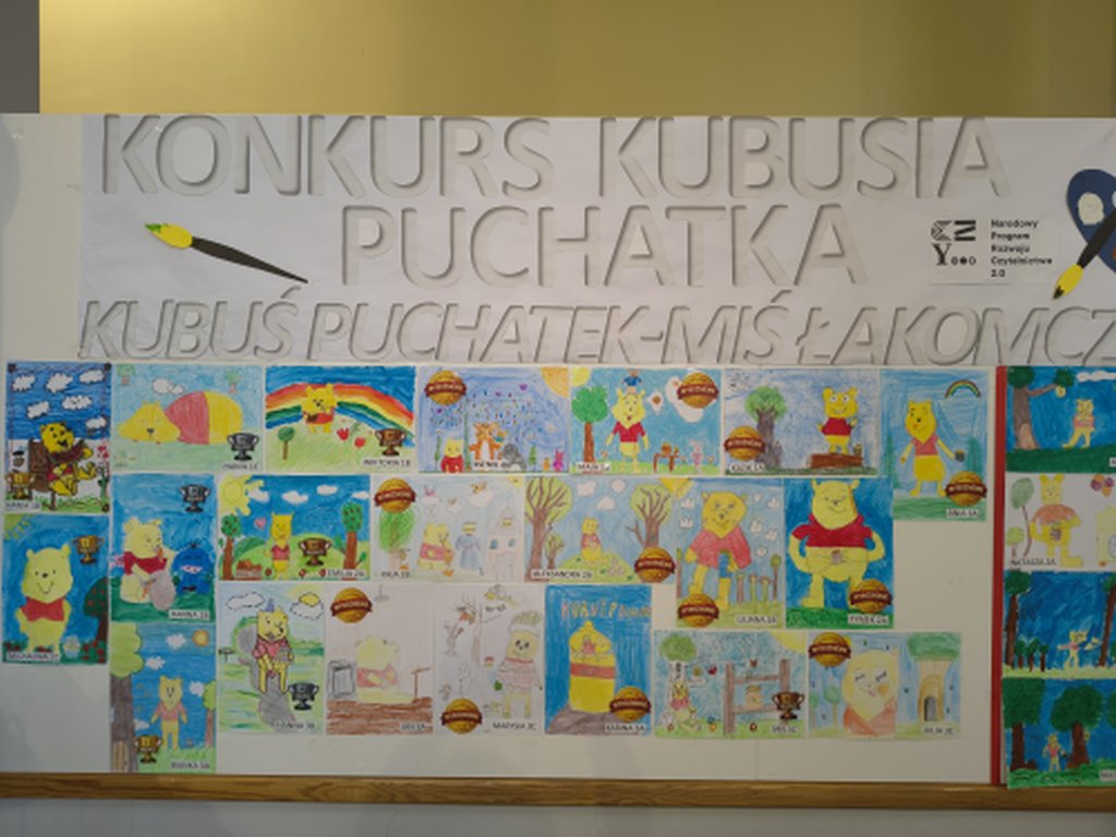 W ramach Narodowego Programu Rozwoju Czytelnictwa w naszej szkolnej bibliotece odbył się konkurs plastyczny z okazji Międzynarodowego Dnia Kubusia Puchatka. W tym roku szkolnym wprowadziliśmy kilka nowych zasad. Uczniowie wcześniej musieli zapisać się na udział w konkursie, a swoje prace wykonywali bezpośrednio w bibliotece szkolnej. Dzięki temu mogliśmy obserwować ich zaangażowanie i twórczą pracę na żywo, mieliśmy też pewność, że prace są samodzielne.