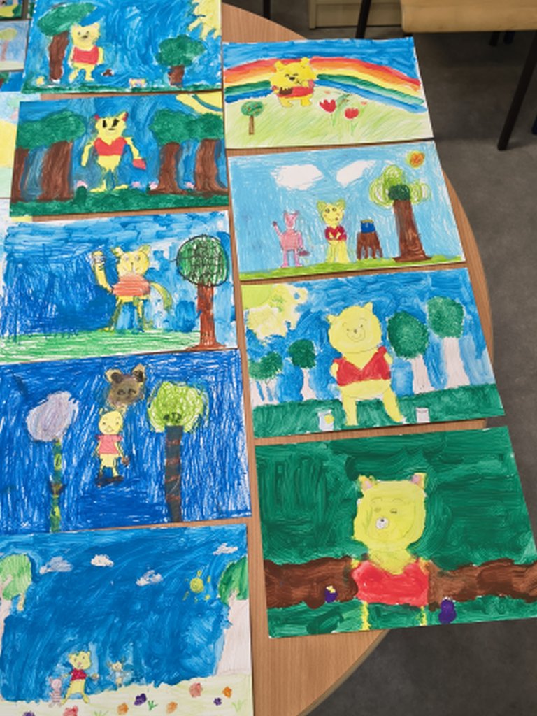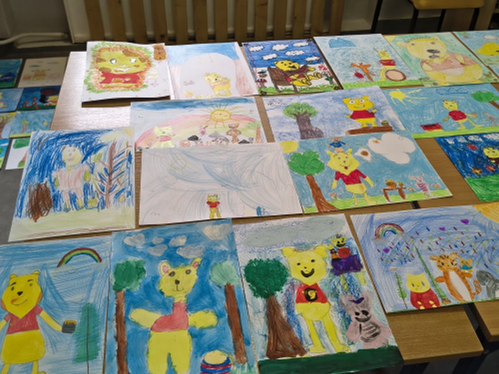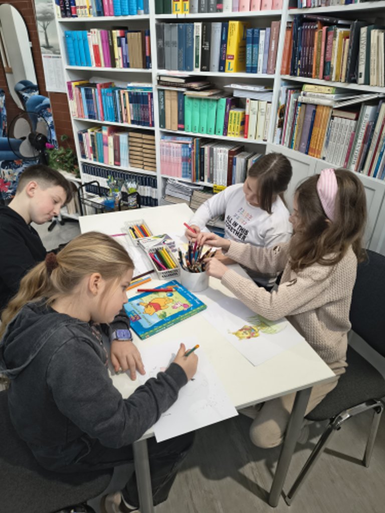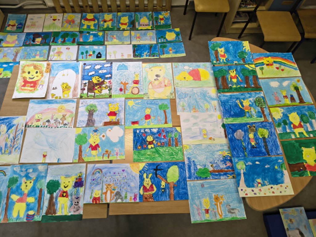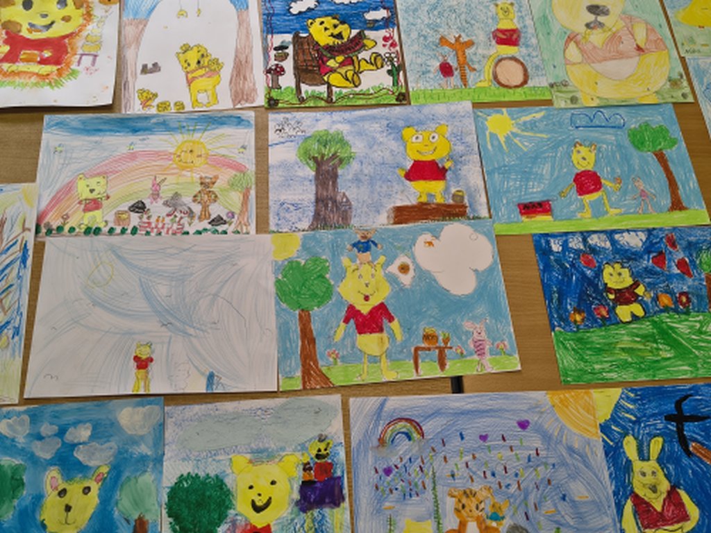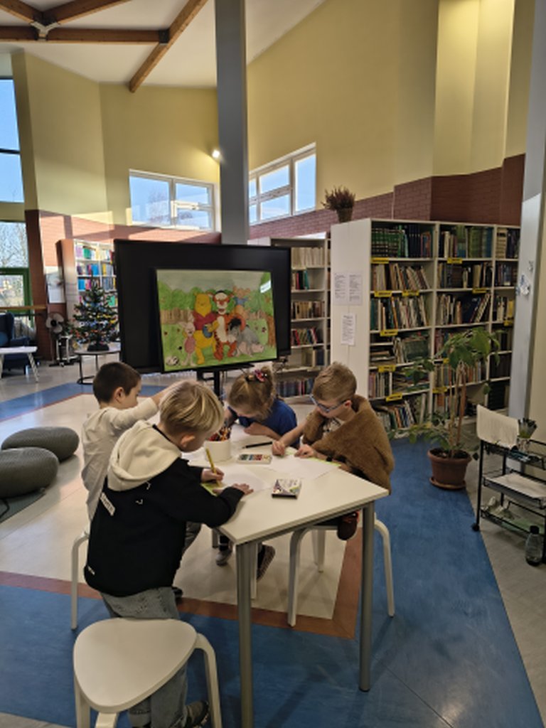W ramach Narodowego Programu Rozwoju Czytelnictwa w naszej szkolnej bibliotece odbył się konkurs plastyczny z okazji Międzynarodowego Dnia Kubusia Puchatka. W tym roku szkolnym wprowadziliśmy kilka nowych zasad. Uczniowie wcześniej musieli zapisać się na udział w konkursie, a swoje prace wykonywali bezpośrednio w bibliotece szkolnej. Dzięki temu mogliśmy obserwować ich zaangażowanie i twórczą pracę na żywo, mieliśmy też pewność, że prace są samodzielne.