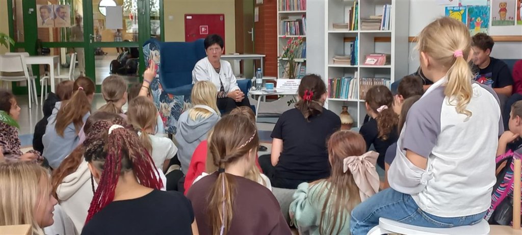 pomocy. W szkolnej bibliotece odbyły się spotkania z ekspertami – pielęgniarką Panią