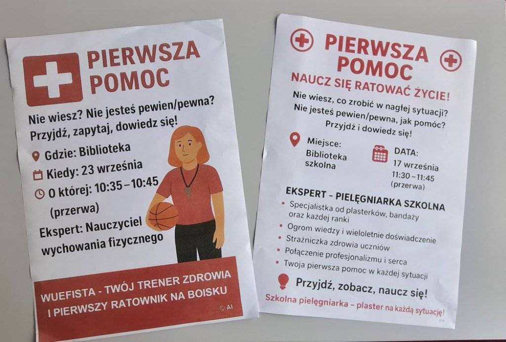 pojawiły się gazetki tematyczne przypominające podstawowe zasady udzielania pierwszej