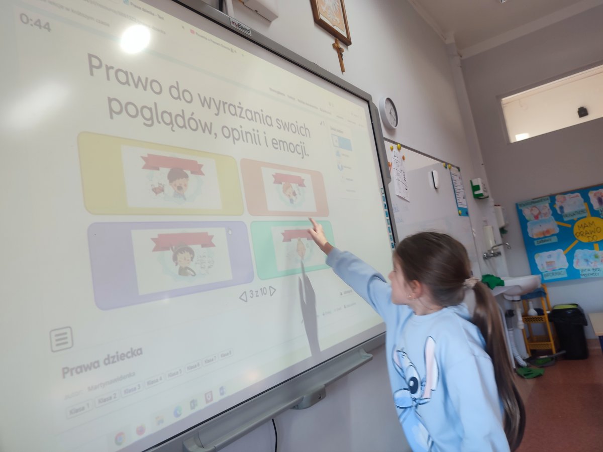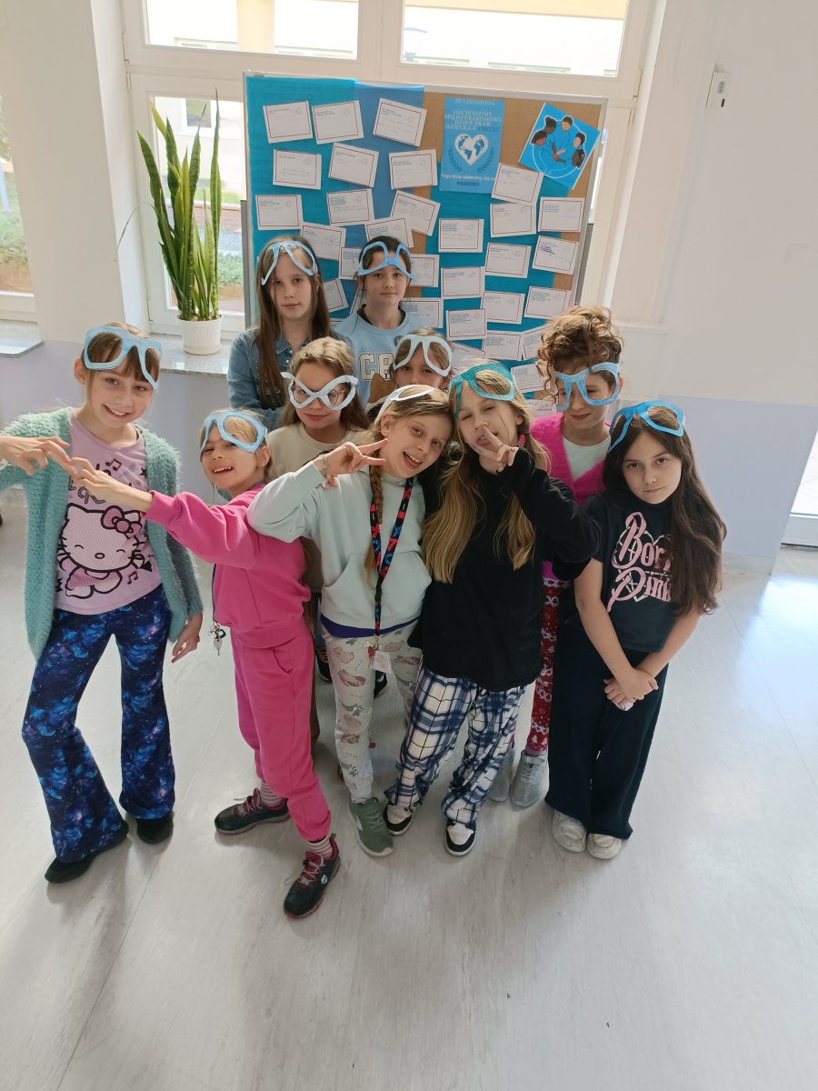 W naszej szkole, w wielu klasach, uroczyście obchodziliśmy Międzynarodowy Dzień Praw Dziecka. Uczniowie wzięli udział w zajęciach poświęconym prawom dziecka, przygotowali pocztówki, wykonywali ćwiczenia interaktywne oraz czytali wiersze i artykuły o tej tematyce. Dzieci dowiedziały się, że bardzo ważne jest budowanie bezpiecznego i wspierającego środowiska, w którym każde dziecko może rozwijać się w atmosferze szacunku. Również w trakcie zajęć świetlicowych odbywały się rozmowy o tym, jak ważne są prawa każdego dziecka prawo do miłości, bezpieczeństwa, edukacji i wyrażania siebie. Nasze świetliczaki stworzyły plakat przedstawiający najważniejsze prawa dziecka, a na koniec przypieczętowały całość swoimi niebieskimi rączkami! Własnoręcznie pomalowane dłonie oraz niebieskie okulary, stały się symbolem jedności, kreatywności i tego, że każde dziecko ma głos.