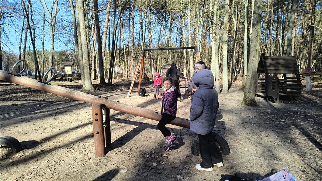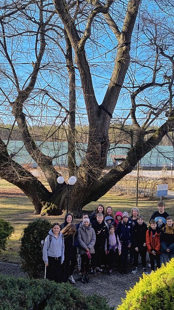 Po spotkaniu edukacyjnym w ośrodku uczestnicy mieli czas na aktywny wypoczynek - na pobliskim placu zabaw oraz na pamiątkowe zdjęcie przy pomniku przyrody – okazałej lipie Annie.