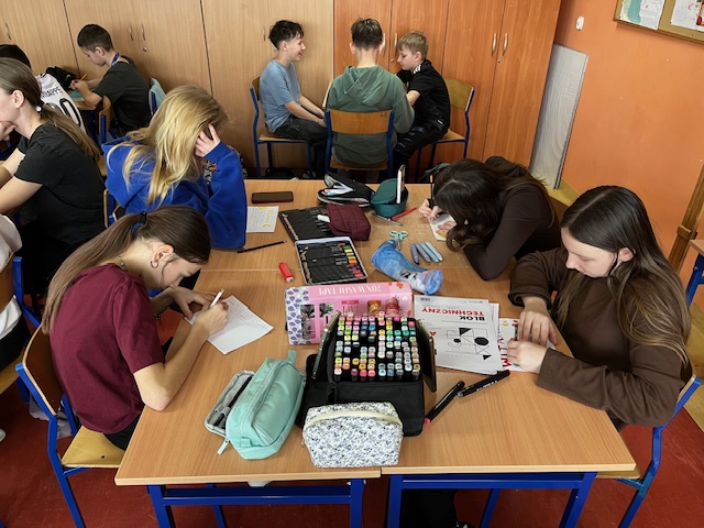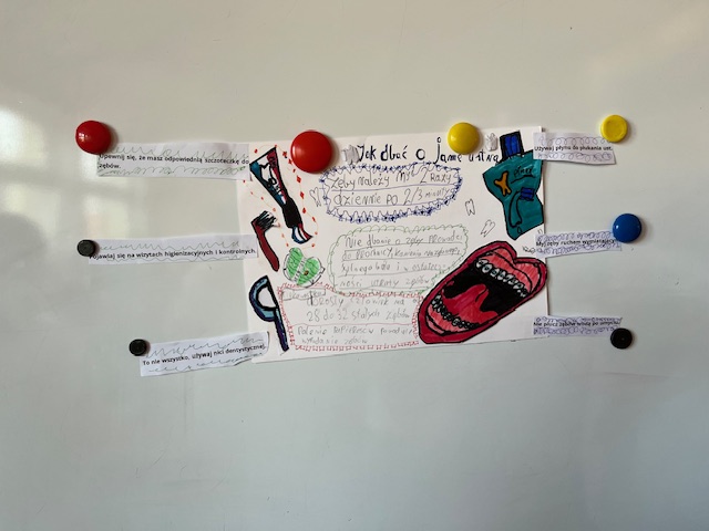 Następnie uczniowie pracowali w kilkuosobowych grupach, wybierając i opracowując wybrane obszary związane ze zdrowym stylem życia. W ramach pracy projektowej powstały prezentacje i materiały dotyczące m.in.: