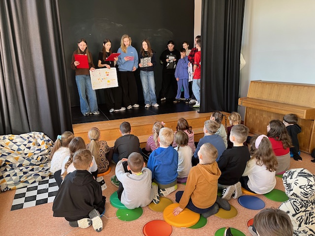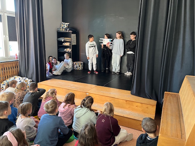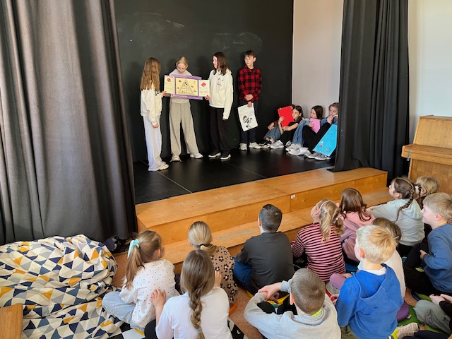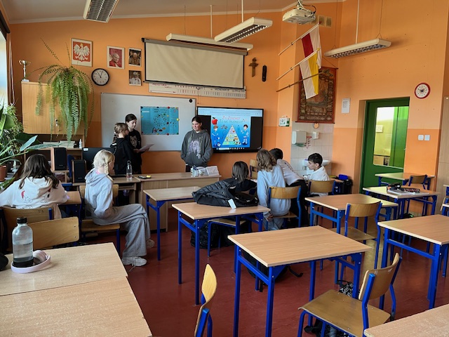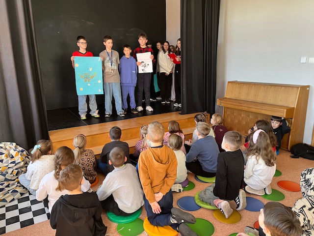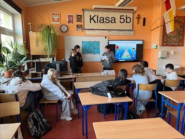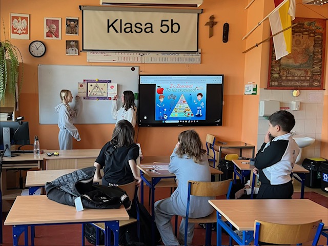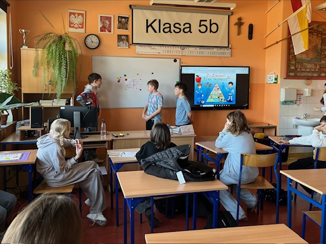 Po zakończeniu etapu przygotowań grupy zaprezentowały swoje prace na forum klasy. Była to okazja do przedstawienia zdobytej wiedzy oraz rozwijania umiejętności wystąpień publicznych. Kolejnym etapem projektu było podzielenie się wiedzą z młodszymi uczniami. Uczniowie klasy 5b przygotowali występ dla klasy 2b, podczas którego zaprezentowali najważniejsze informacje dotyczące zdrowego stylu życia.
