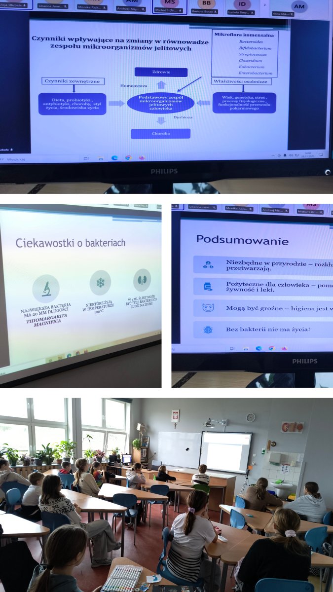 W piątek (28.11.2025) odbyło się pierwsze w tym roku szkolnym spotkanie online dla kilkunastu szkół na temat „Poznajemy znaczenie bakterii w przyrodzie i dla człowieka”. Spotkanie poprowadziła Pani dr inż. Alicja Dłubała z Wydziału Nauk o Żywności i Rybactwa. Do projektu zaprosiła nas Pani Małgorzata Majewska – Oddział Szczeciński Polskiego Towarzystwa Przyrodników im. Kopernika.