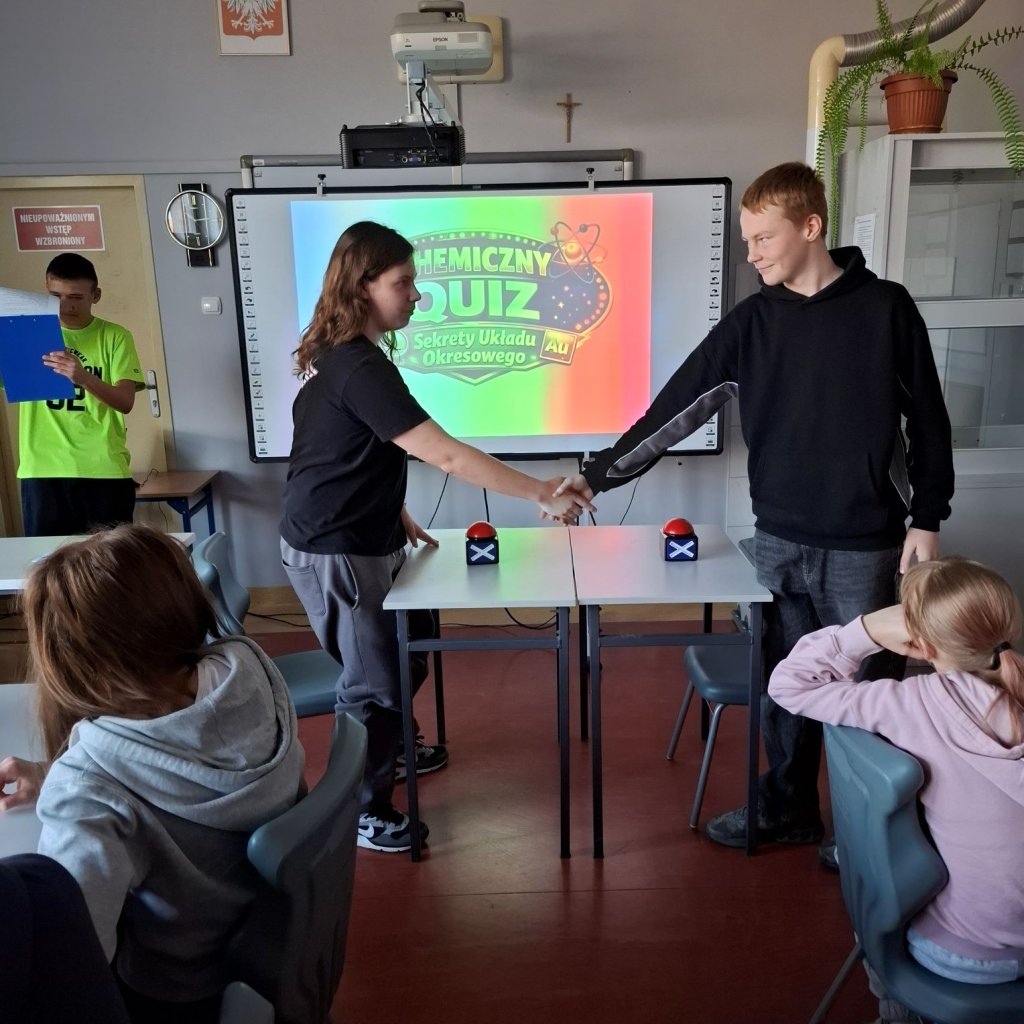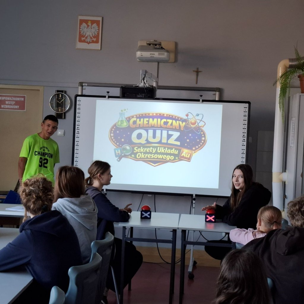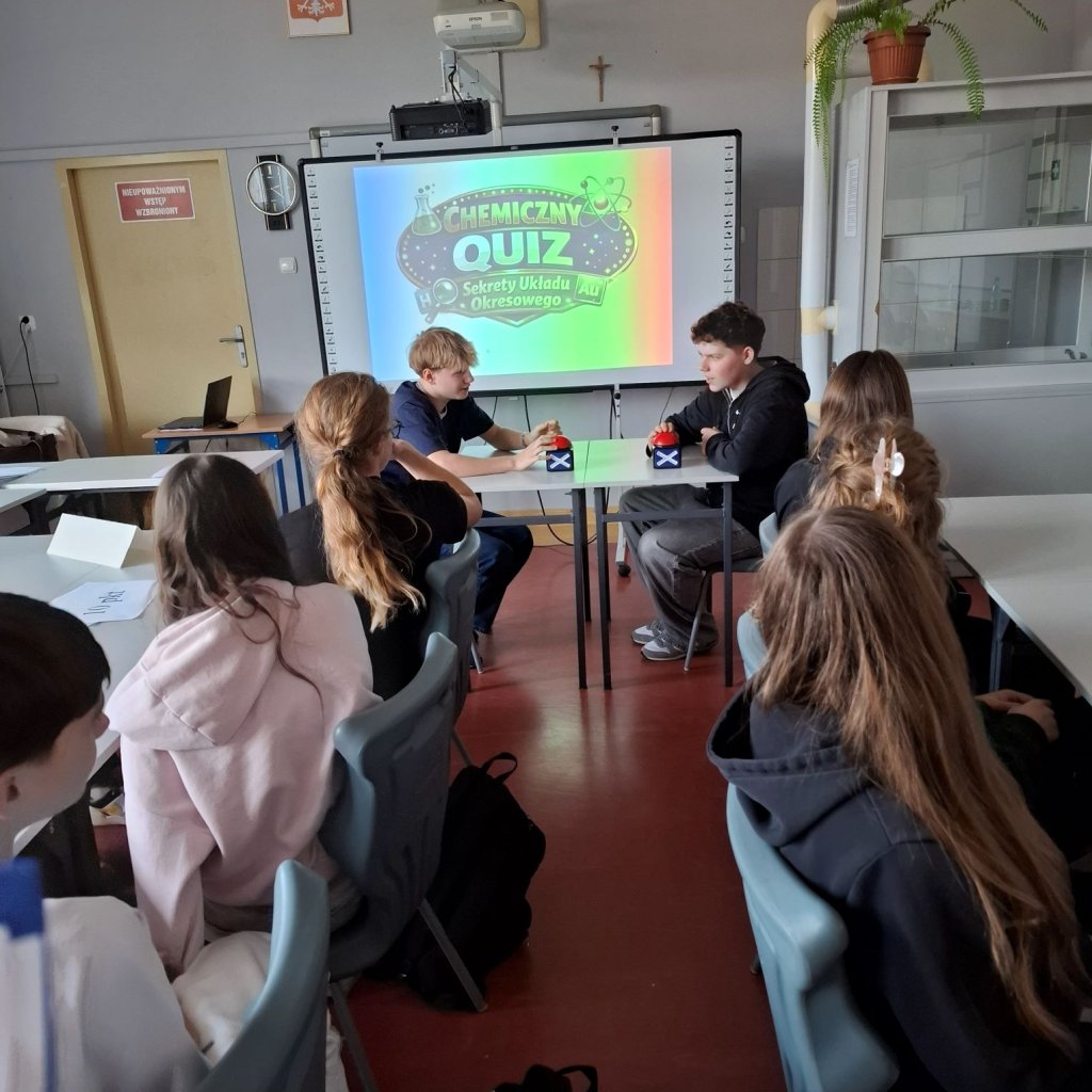 6 marca obchodziliśmy Międzynarodowy Dzień Układu Okresowego. To doskonała okazja, aby przypomnieć sobie, jak kluczową rolę w nauce odgrywa zestawienie pierwiastków i jak fascynujący potrafi być świat chemii. Aby uczcić to święto, uczniowie klas ósmych wzięli udział w quizie chemicznym pod hasłem „Sekrety Układu Okresowego”. Podczas zabawy mierzyli się z zagadkami i pytaniami dotyczącymi pierwiastków, ich symboli oraz właściwości. Quiz był nie tylko szansą na wykazanie się wiedzą, ale także świetną formą nauki poprzez zabawę.