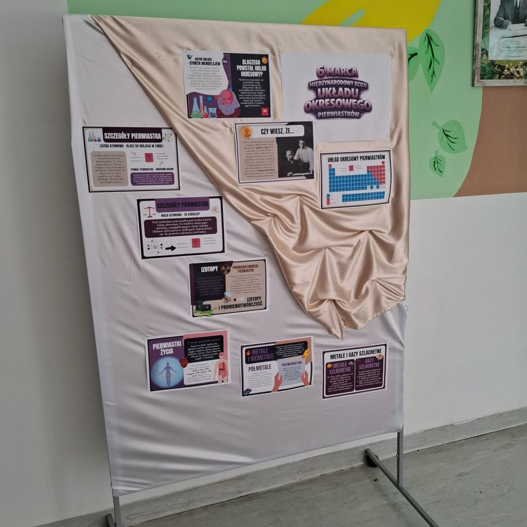 W obchody aktywnie włączyli się również uczniowie klas siódmych. Utrwalali oni swoją wiedzę, rozwiązując ciekawe karty pracy. Przygotowane zadania wymagały logicznego myślenia, doskonałej znajomości symboli oraz umiejętności sprawnego korzystania z układu okresowego. Wydarzenie to stało się znakomitą okazją do rozwijania pasji przyrodniczych oraz utrwalania zdobytej wiedzy w atrakcyjnej i angażującej formie.