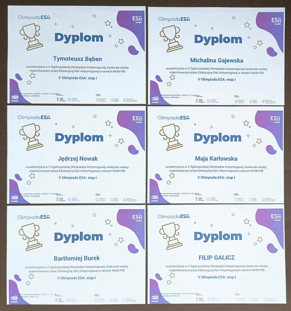 Sześcioro uczniów z klas 7-8 reprezentowało naszą szkołę w I etapie Konkursu Wiedzy o Powietrzu i Zmianach Klimatu, który odbył się 17.03.2026 roku.