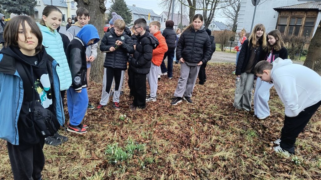Choć poranek przywitał nas lekką mżawką, w piątek (20.03.2026) na lekcji wychowawczej dwie klasy piąte wyruszyły na wiosenny spacer w okolice pobliskiego lasu. Celem wyprawy było nie tylko zaczerpnięcie świeżego powietrza, lecz także wspólne poszukiwanie pierwszych oznak budzącej się do życia przyrody.