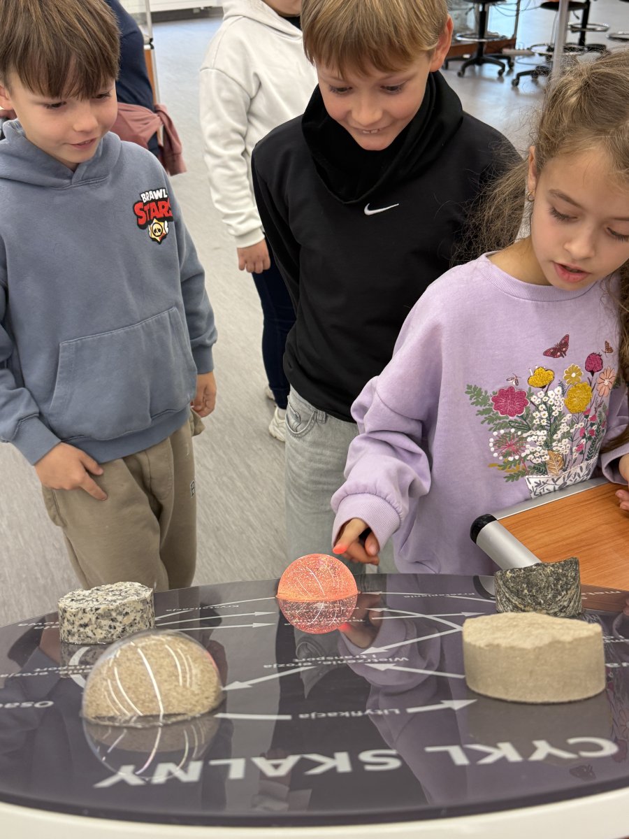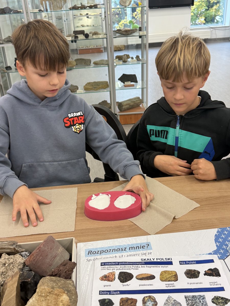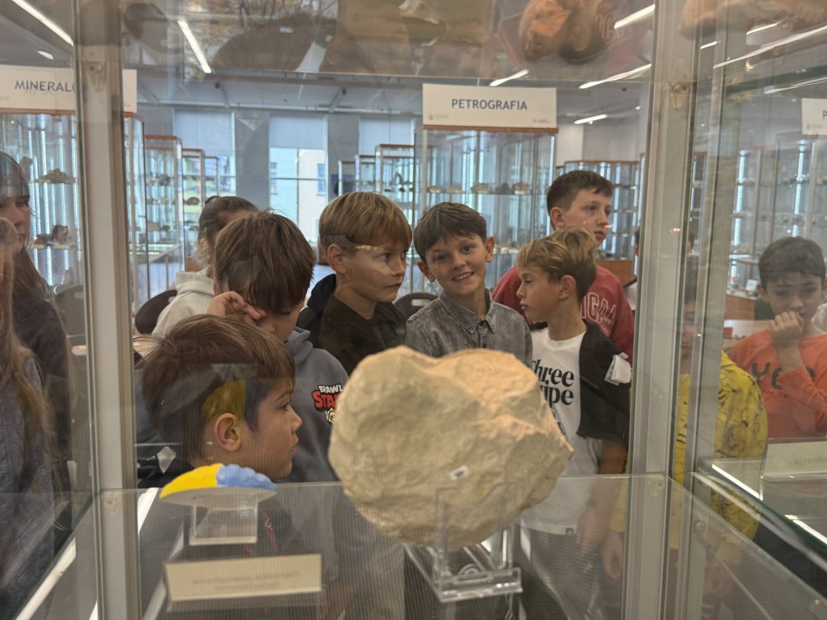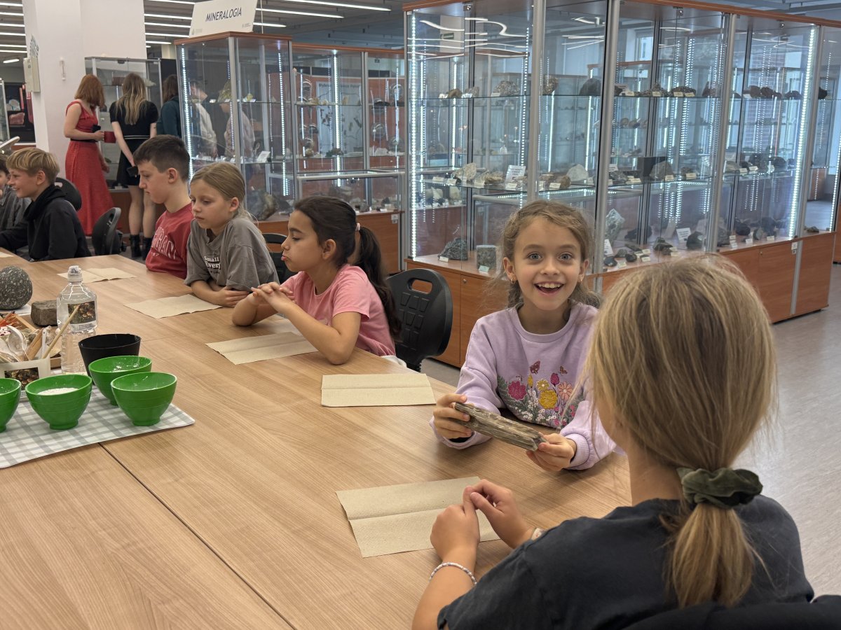 Dzieci wzięły również udział w warsztatach edukacyjnych, podczas których mogły samodzielnie wcielić się w rolę młodych odkrywców. Na zakończenie odwiedziły Muzeum Geocentrum, gdzie z zainteresowaniem oglądały okazy skał, minerałów i skamieniałości.