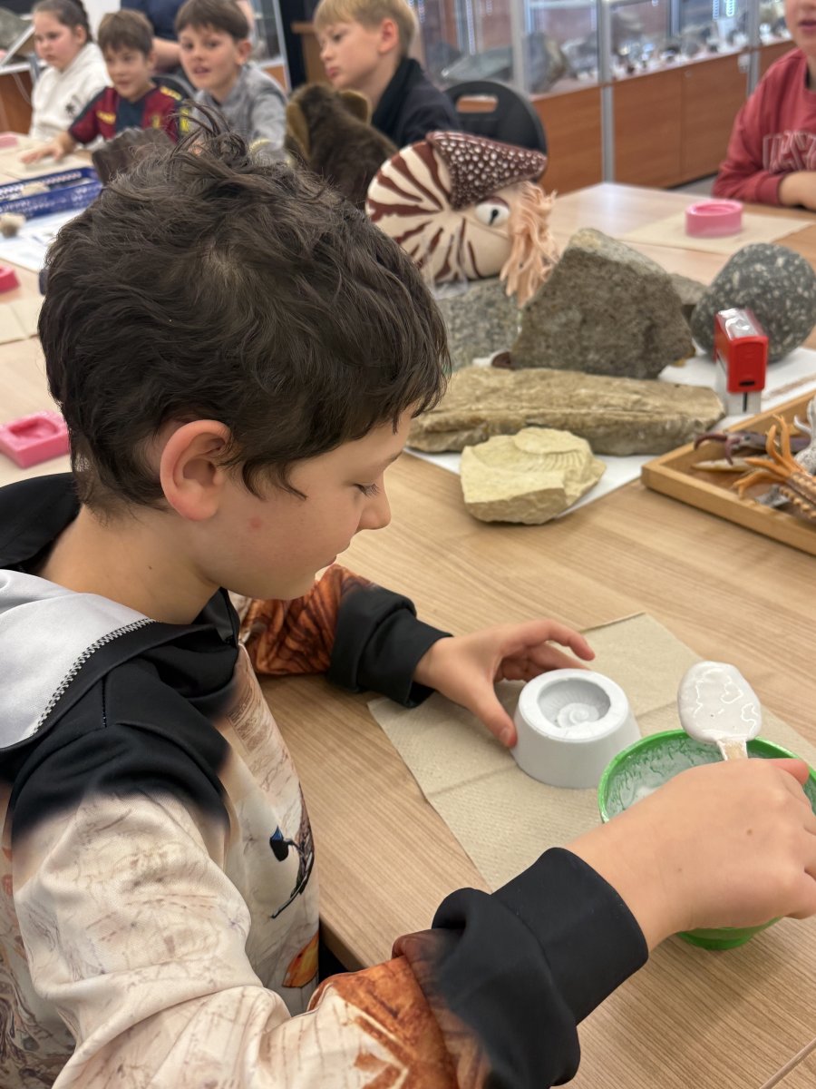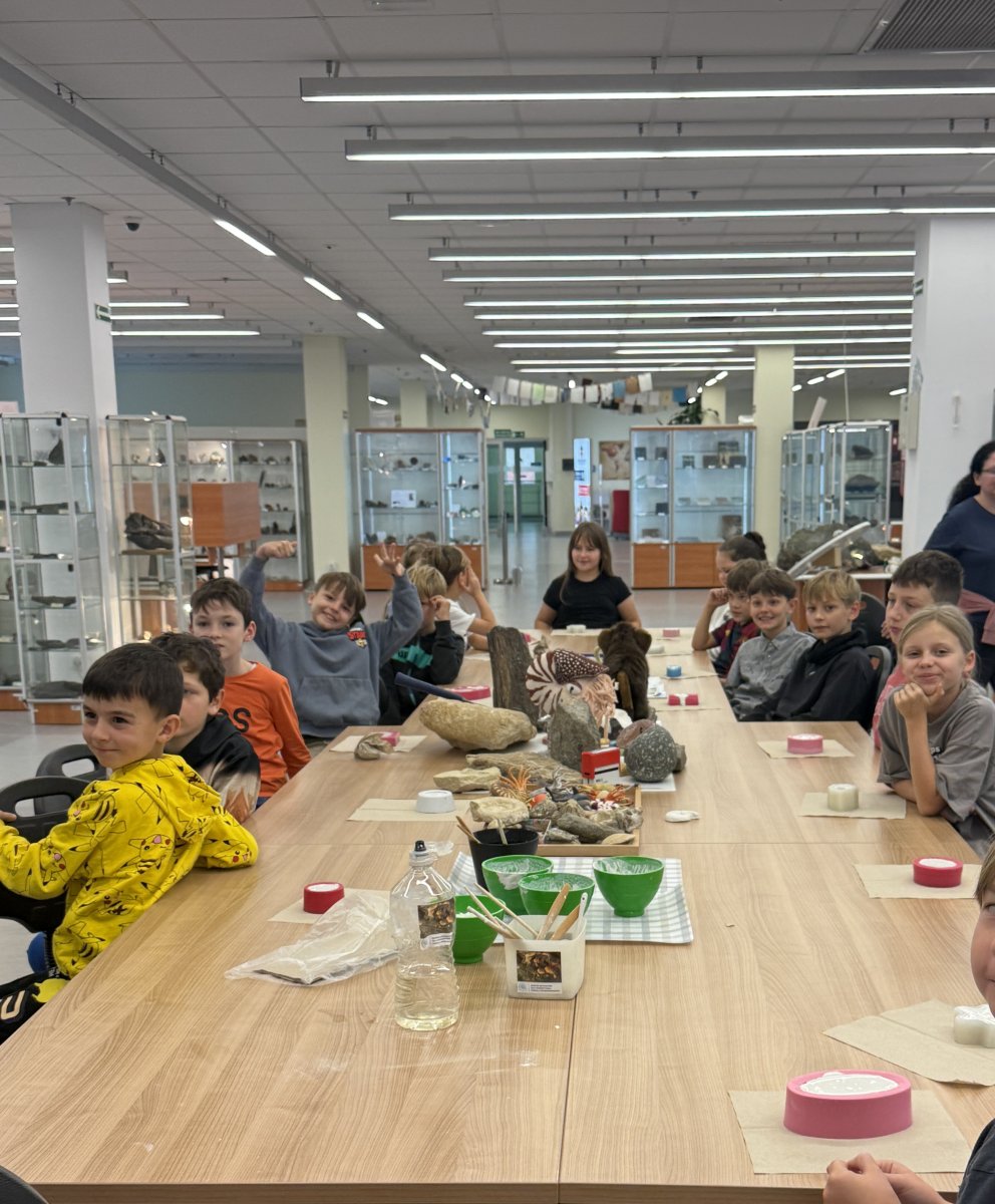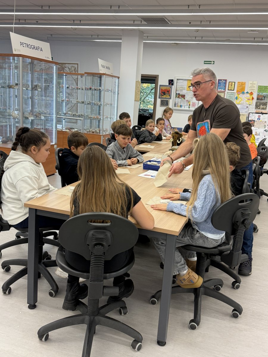 Dzieci wzięły również udział w warsztatach edukacyjnych, podczas których mogły samodzielnie wcielić się w rolę młodych odkrywców. Na zakończenie odwiedziły Muzeum Geocentrum, gdzie z zainteresowaniem oglądały okazy skał, minerałów i skamieniałości.