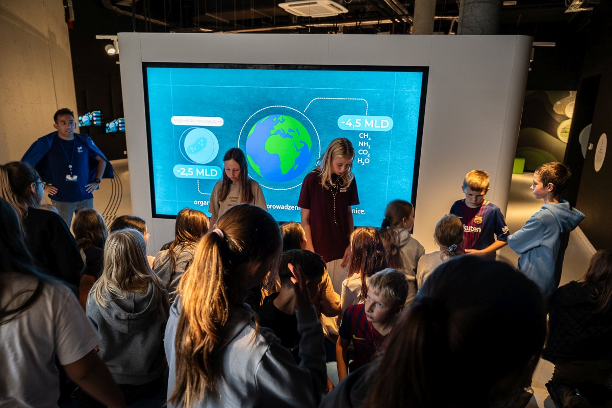 Pierwszym punktem programu było zwiedzanie edukatoriów, czyli interaktywnych przestrzeni, w których uczniowie mogli w ciekawy i angażujący sposób poszerzać swoją wiedzę z różnych dziedzin nauki. Dzieci bawiły się fizyką, fascynowały się biologią, obserwując różnorodność życia, inspirowały historią i naukami humanistycznymi, poznawały geografię oraz zgłębiały tajniki matematyki. Dzięki nowoczesnym stanowiskom edukacyjnym nauka stała się prawdziwą przygodą, a zdobyta wiedza – bardziej zrozumiała i interesująca.