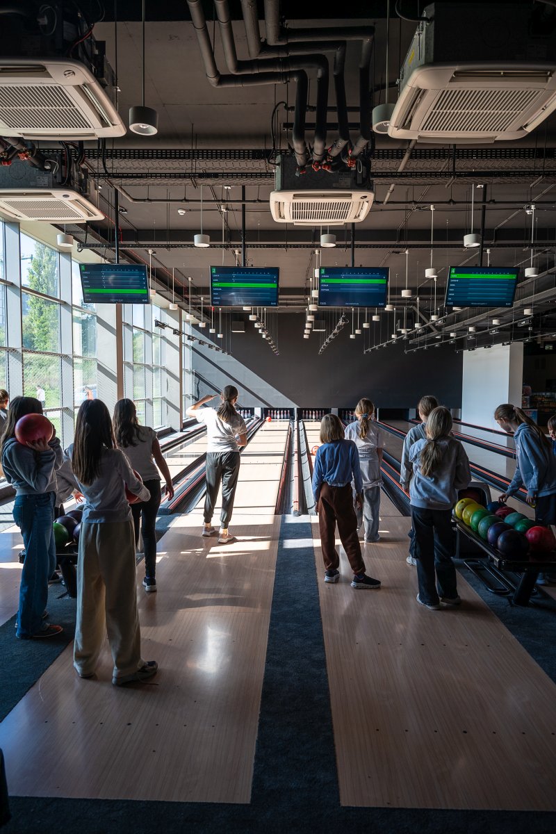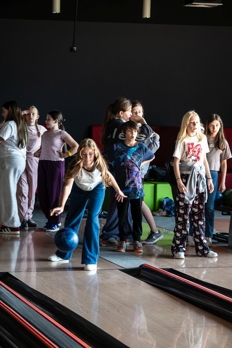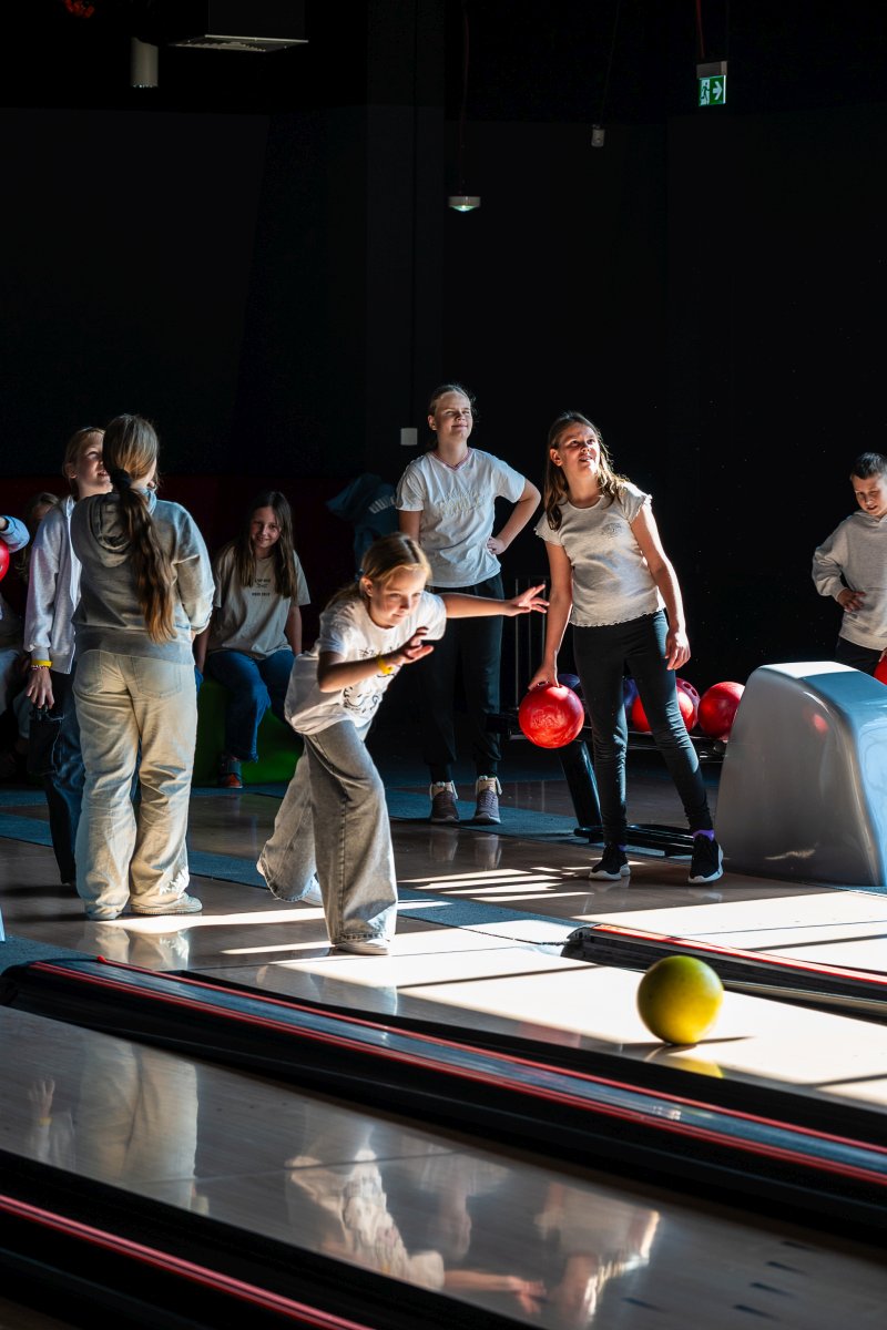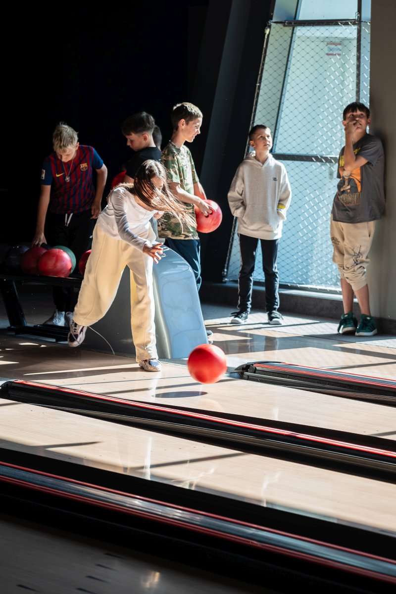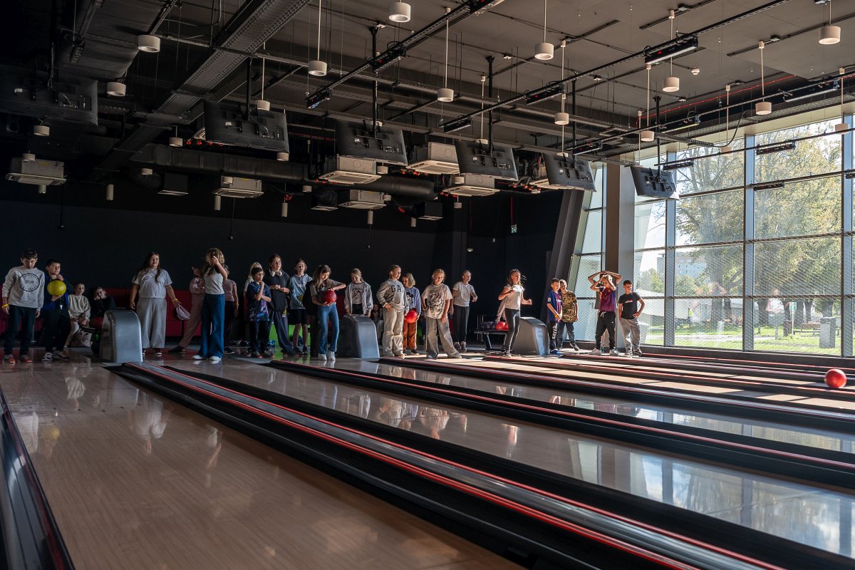 Po części edukacyjnej przyszedł czas na integrację i aktywność ruchową. Uczniowie udali się na kręgielnię, gdzie mogli wspólnie spędzić czas podczas gry w kręgle. Wspólna zabawa sprzyjała budowaniu relacji, współpracy oraz rozwijaniu sprawności fizycznej.