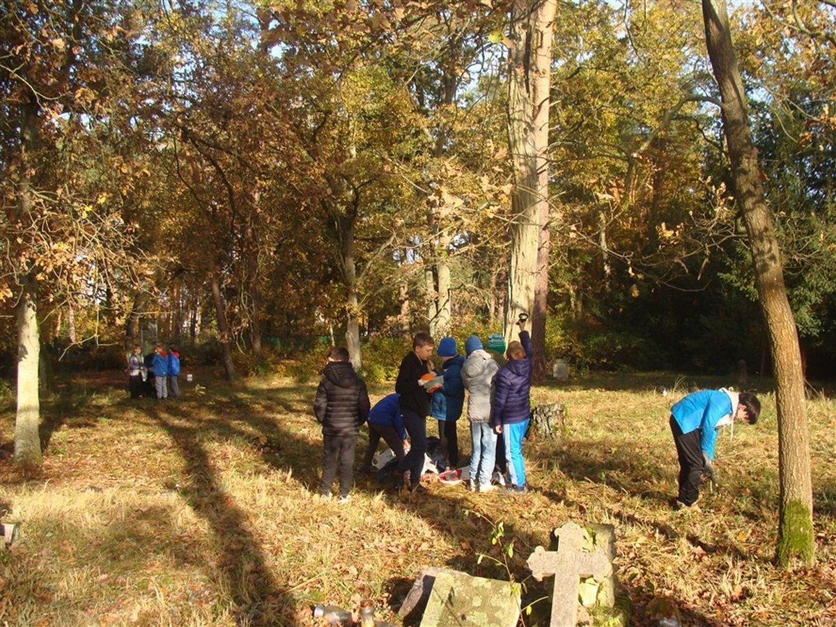 29 października 2025 roku klasy: 4b i 4c wraz z nauczycielami przyrody i historii wyjechały szkolnym autobusem na zajęcia przyrodniczo-historyczne na teren cmentarza poniemieckiego w Rurzycy. Uczniowie wykonywali w grupach przydzielone zadania a następnie porządkowali nagrobki, aby na koniec zapalić na nich znicze.